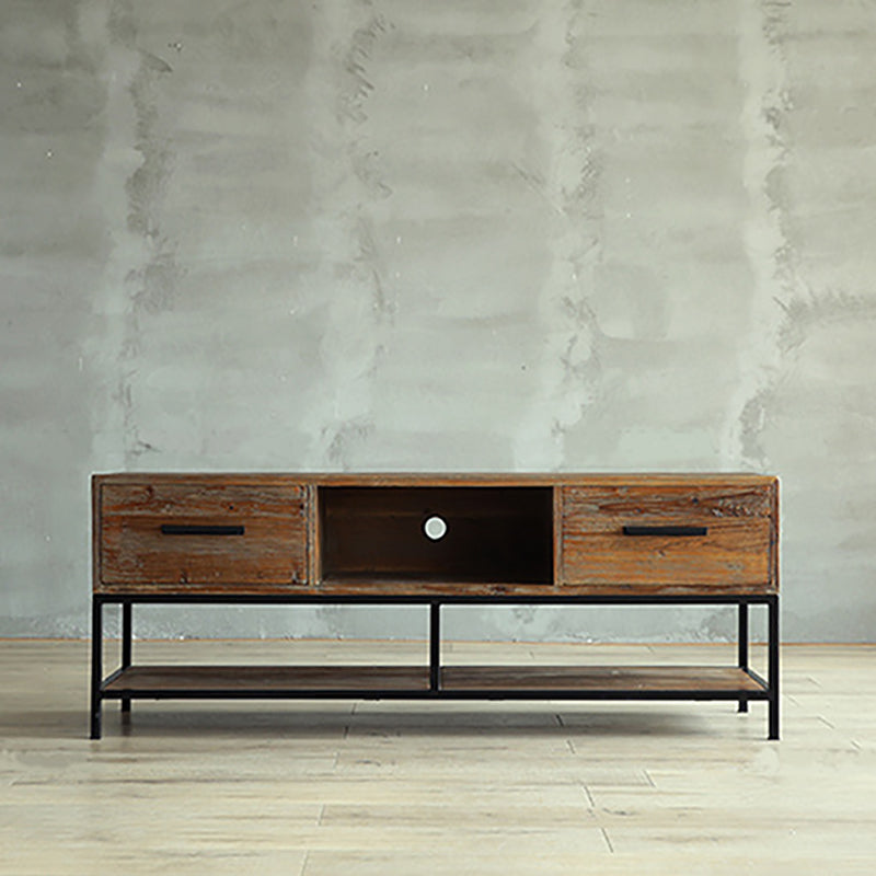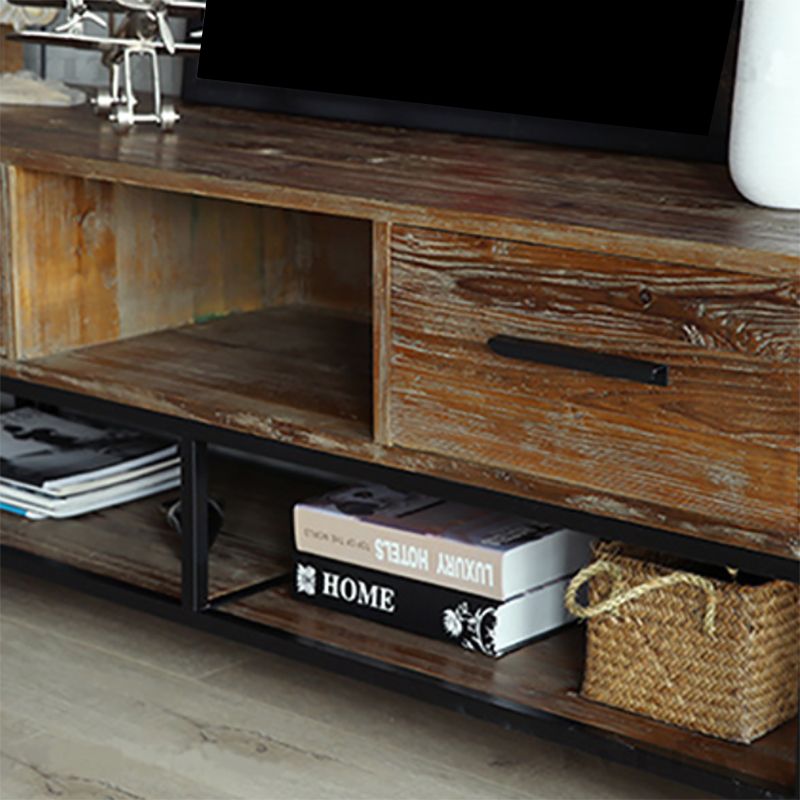 Industrial Wood TV Console Open Storage TV Media Stand for Living Room