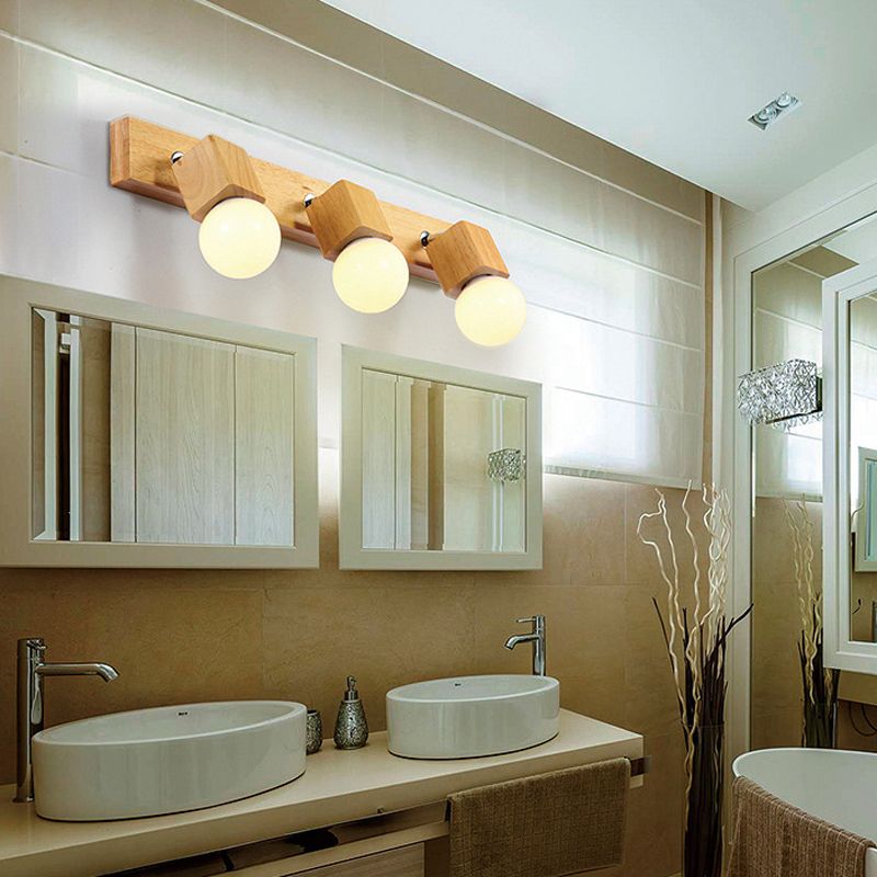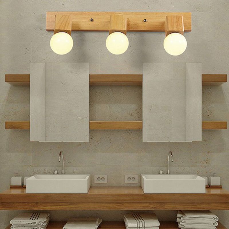 Modern Mirror Front Light Multi Lights Vanity Light with Wood for Bathroom