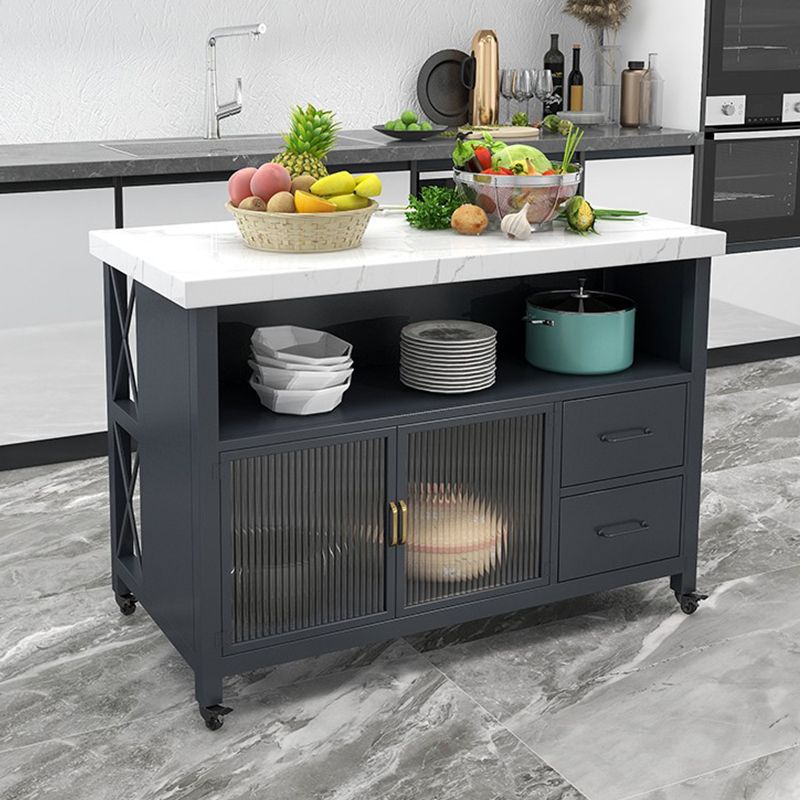 Modern White Faux Marble Kitchen Trolley with Storage Cabinet