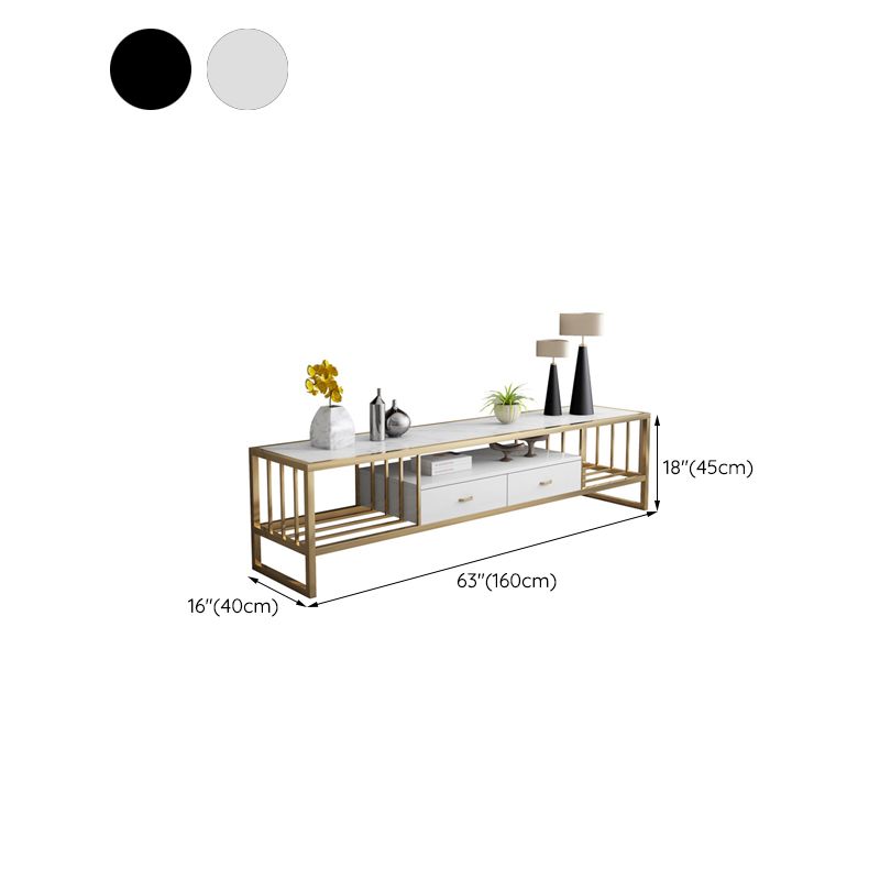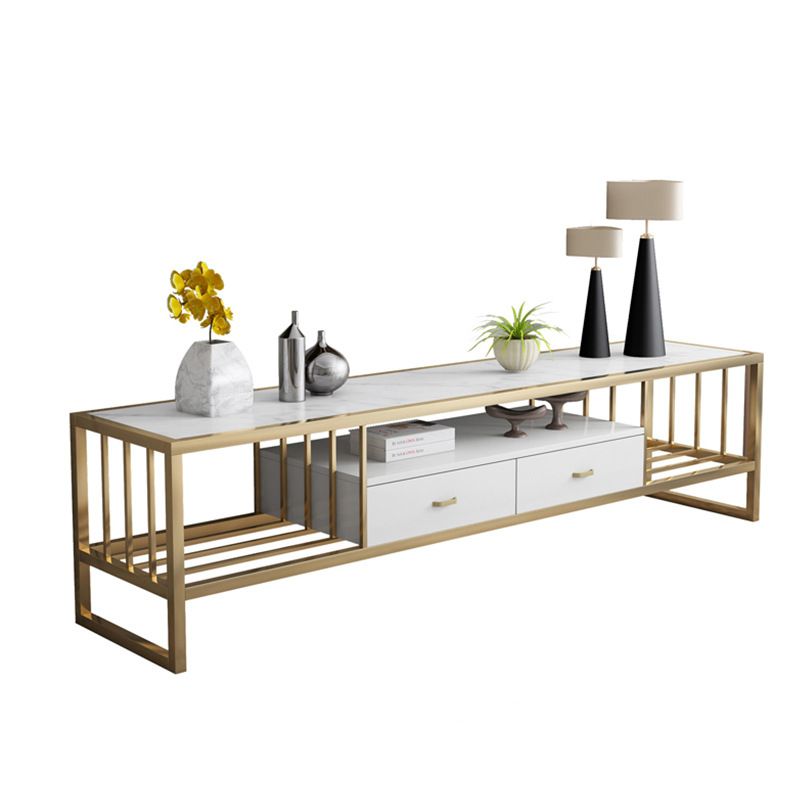 Open Storage Media Console Marble TV Stand Console with Drawers