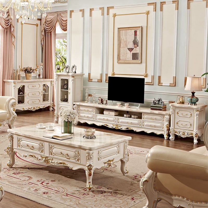 Open Storage TV Media Stand Glam TV Media Console with 6 Drawers