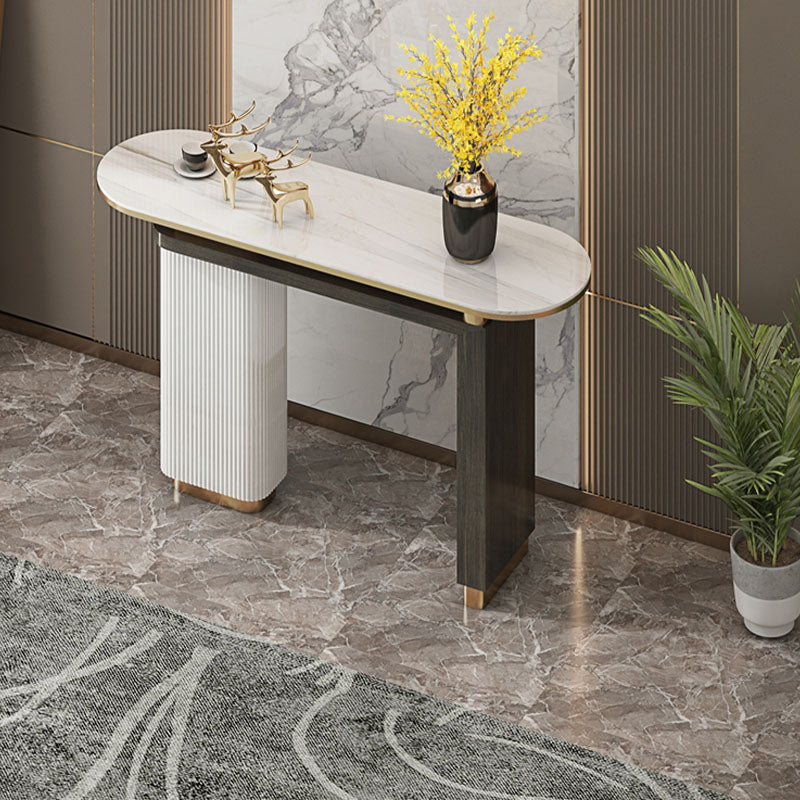 Oval Shape Contemporary Console Table Stone Console Sofa Table in Black and White
