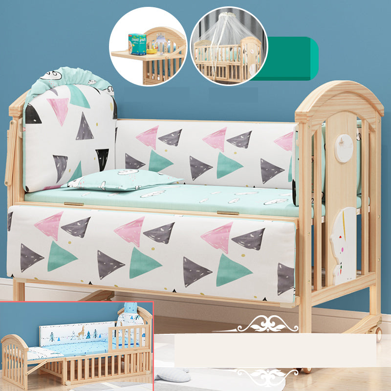 Pine Convertible Baby Crib Height Adjustable Crib with Guardrail