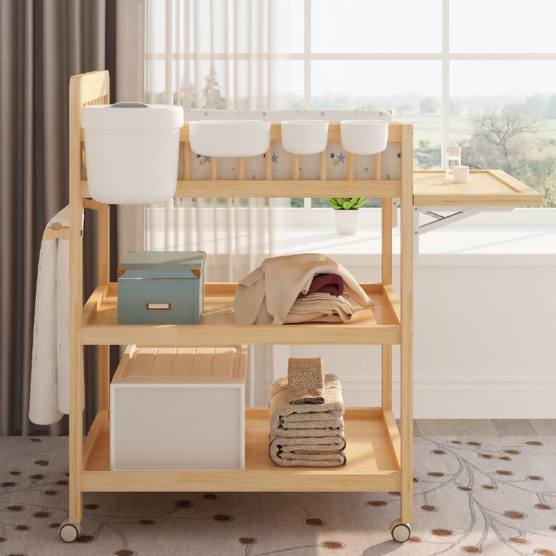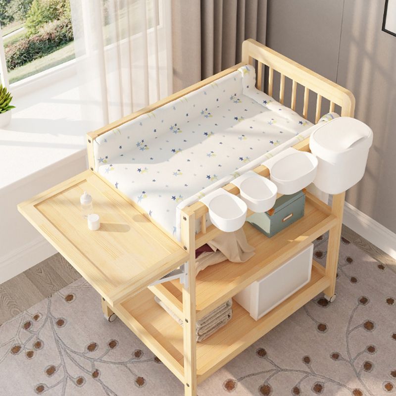 Pine Flat Top Changing Table with Changing Pad 2-in-1 Shelf Baby Changing Table