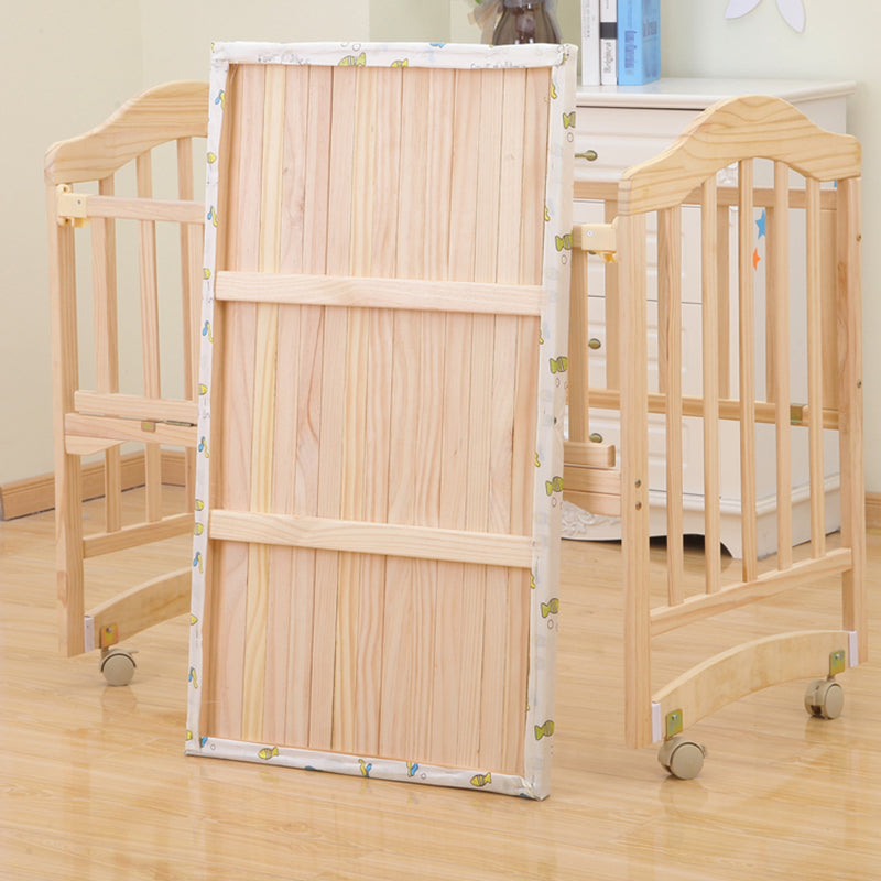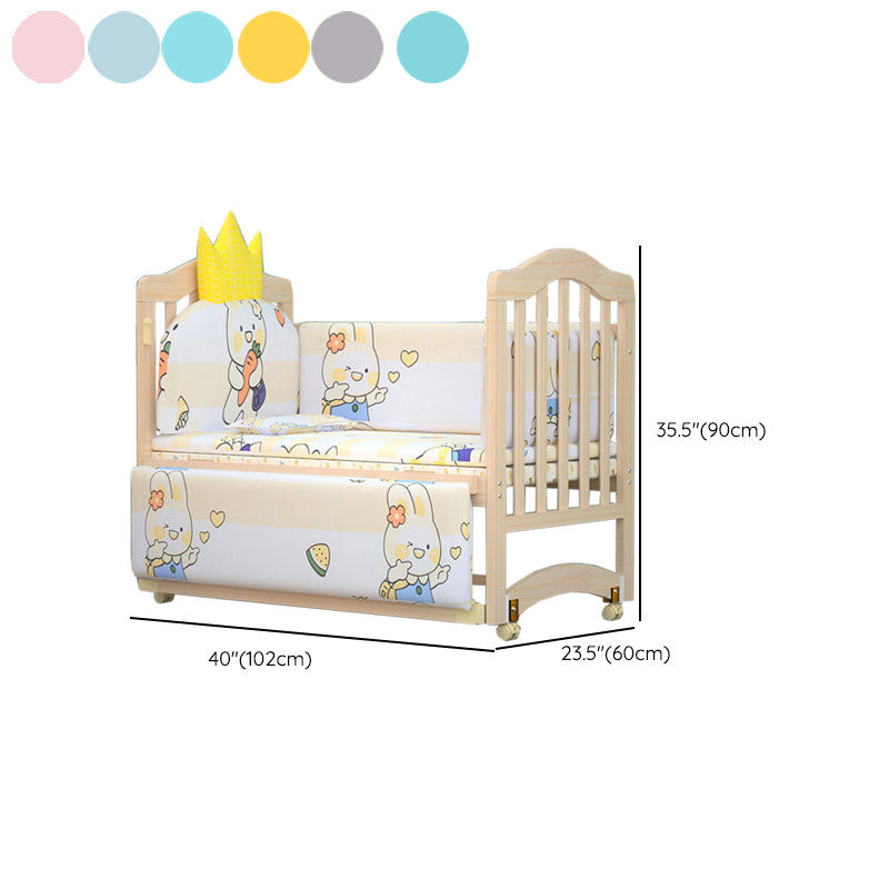 Pine Wood Scandinavian Nursery Bed Animal Print Crib with Wheels
