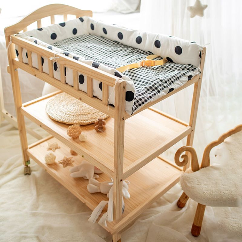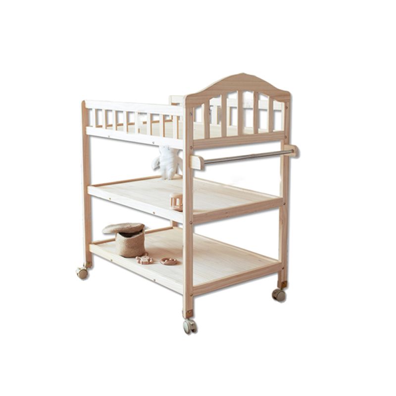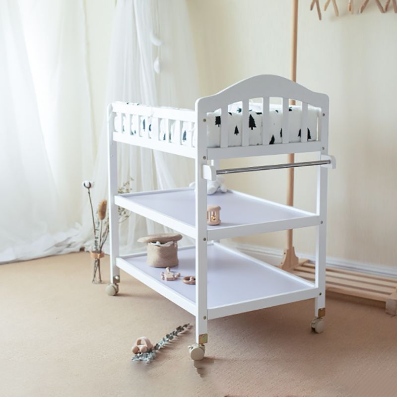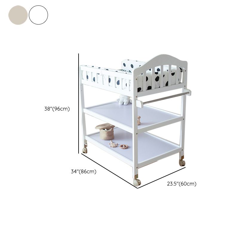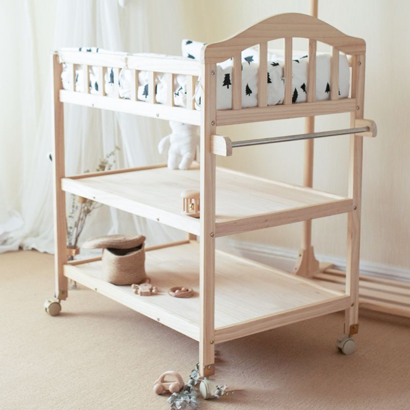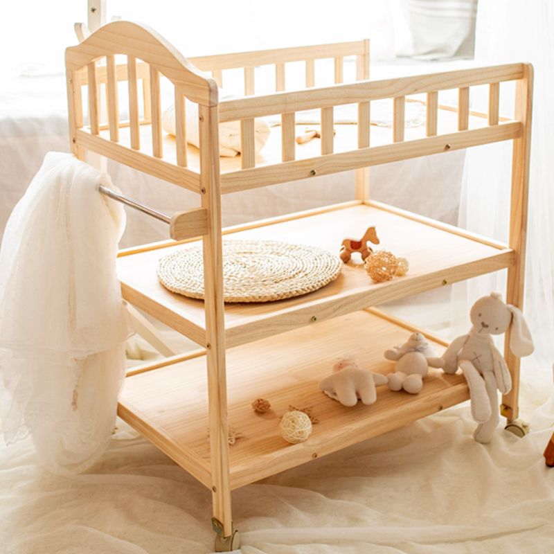 Pine Wooden Baby Changing Table with Pad Arch Top Shelf Changing Table with Storage