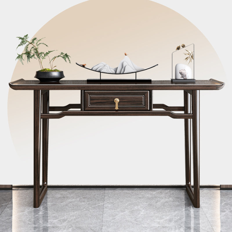 Rectangle Contemporary Console Table Brown Stone Console Sofa Table with 1 Drawer