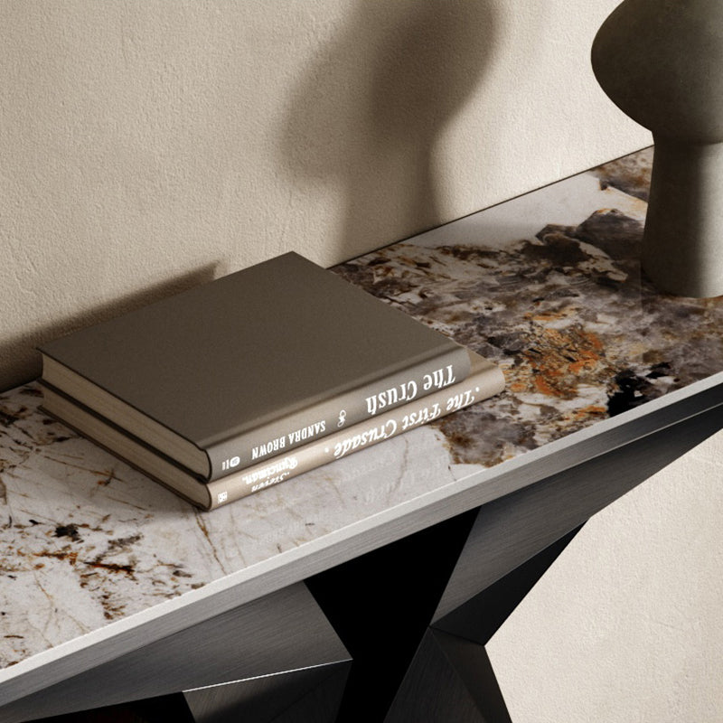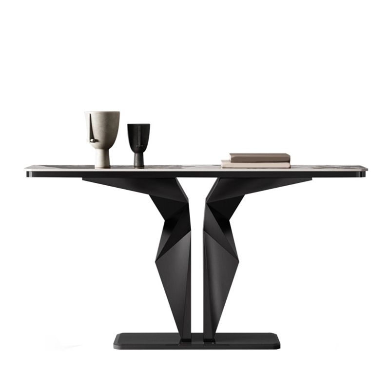 Rectangle Shape Contemporary Console Table Gold/Black Stone Sofa Table for Hall