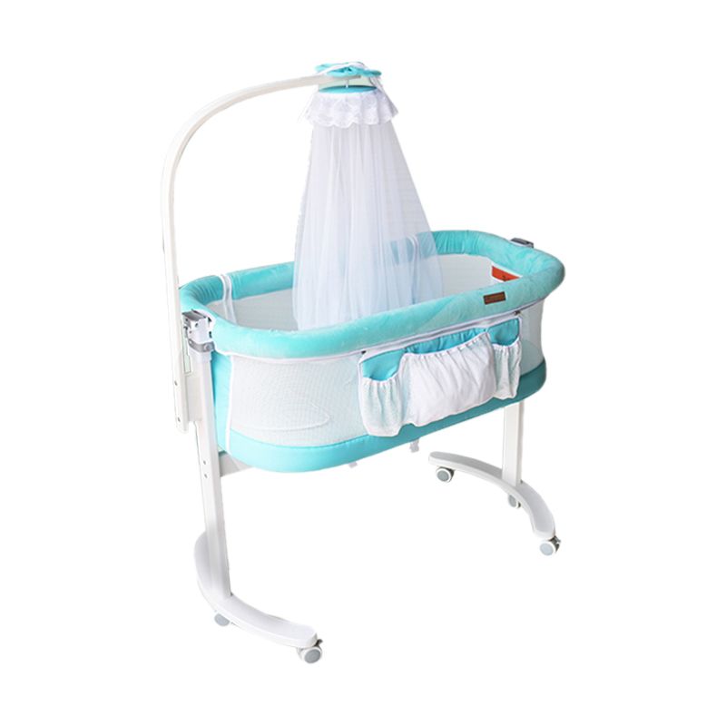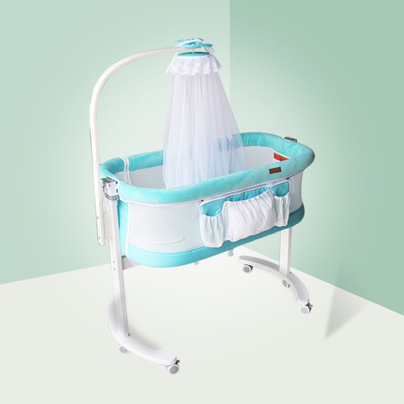 Solid Wood and Metal Bassinet Gliding Oval Crib Cradle for Baby