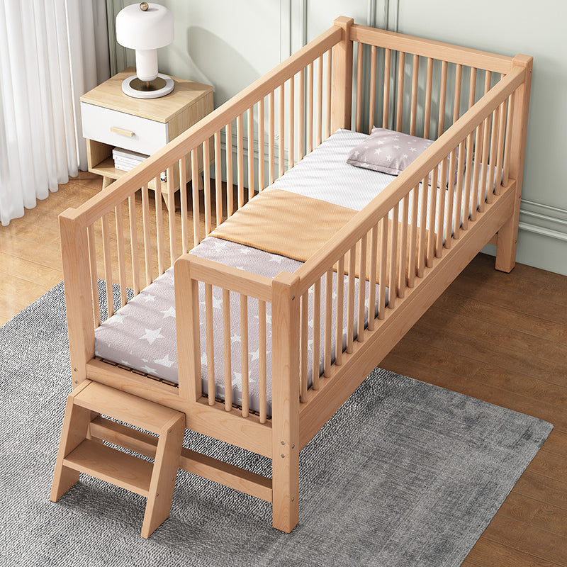 Traditional Style Solid Wood Nursery Crib with Mattress and Guardrail