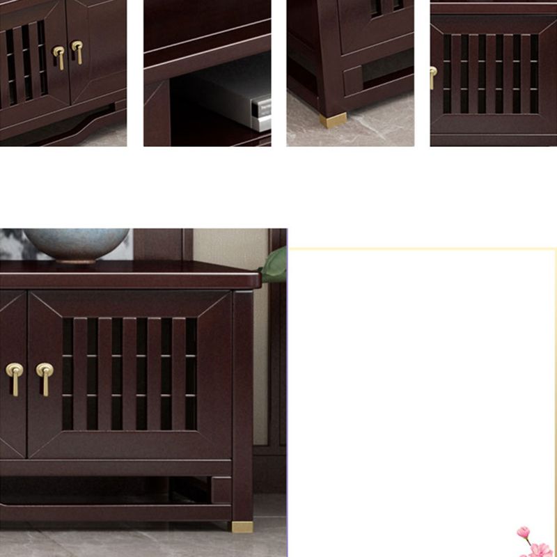 Traditional TV Media Stand Open Shelving Rubberwood TV Stand Console with Drawers