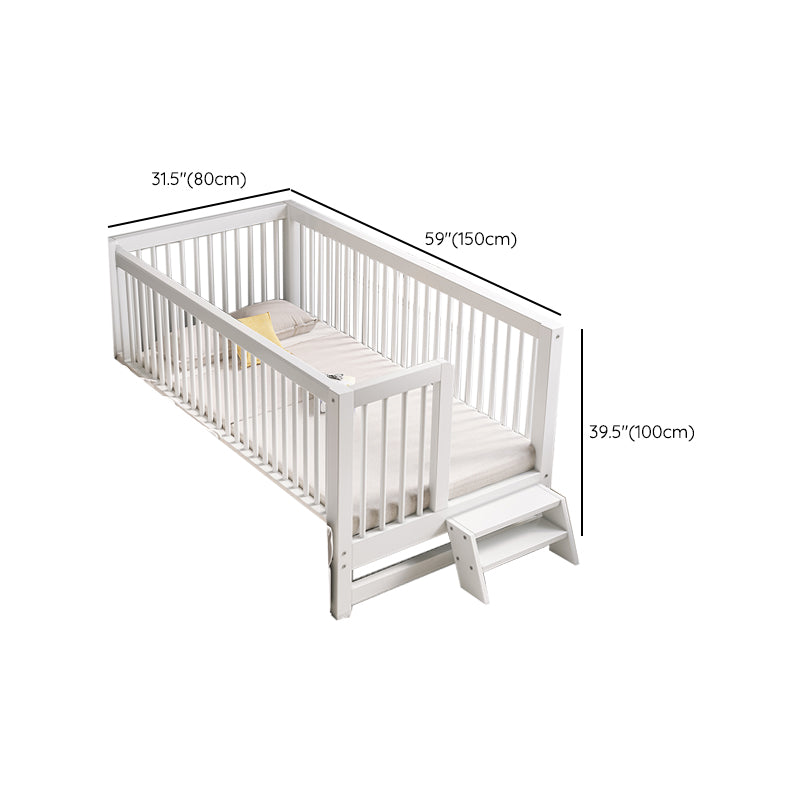 White Baby Crib Scandinavian Beech Nursery Bed with Guardrails