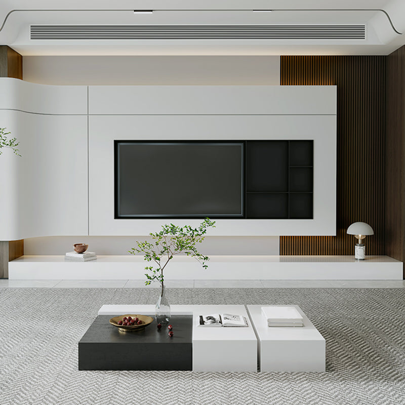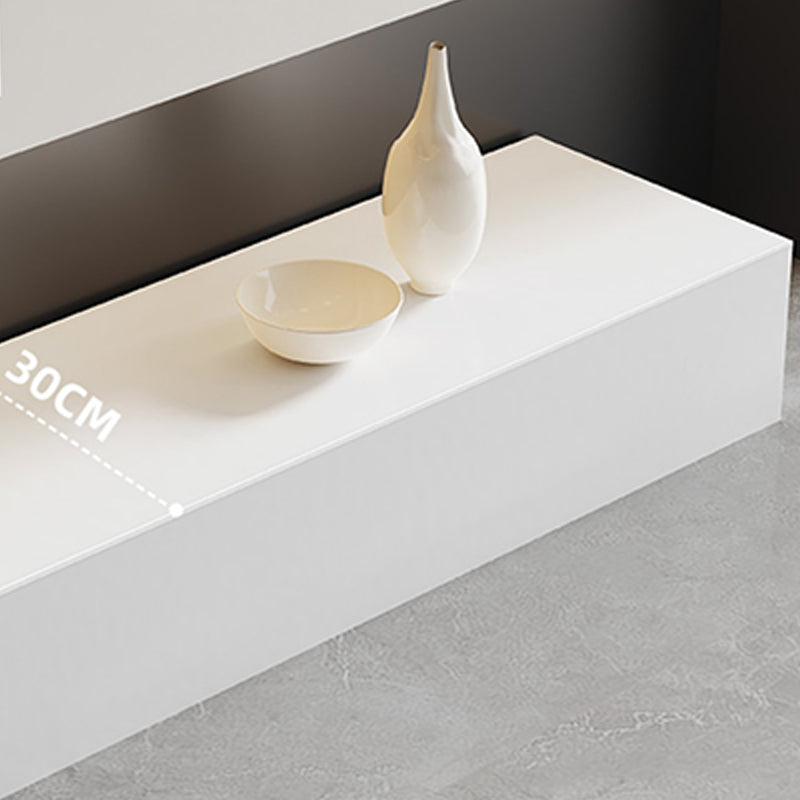 White Media Console Contemporary Stone TV Stand Console with Drawers