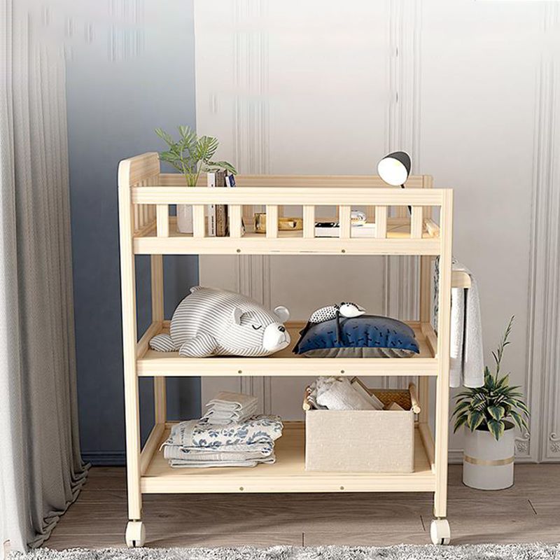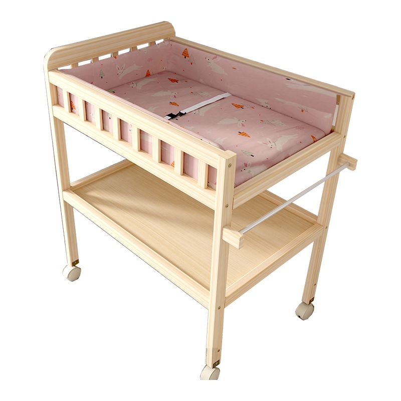 Wooden Shelf Changing Table with Pad and Storage Flat Top Baby Changing Table
