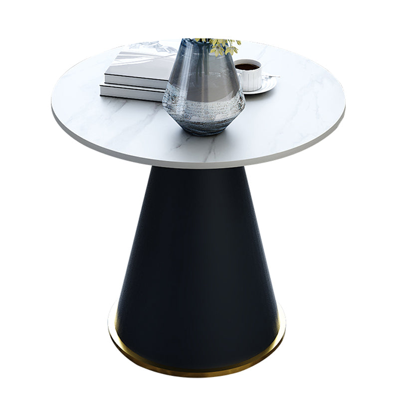 22" Tall Round Slate Top End Table Modern Metal Pedestal Table