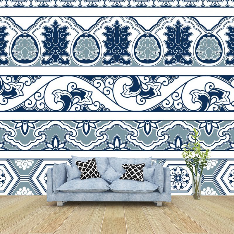 Blue Bohemian Murals Wallpaper Whole Seamless Pattern Wall Decor for Living Room