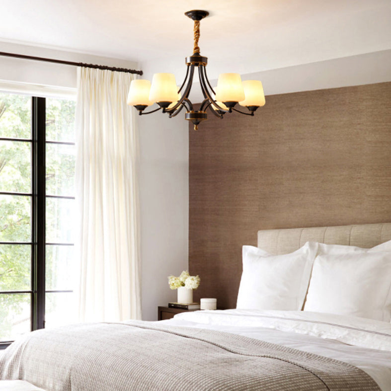 Bronze hanglamp in traditionele vintage stijl koper sputnik kroonluchter met matglasschaduw