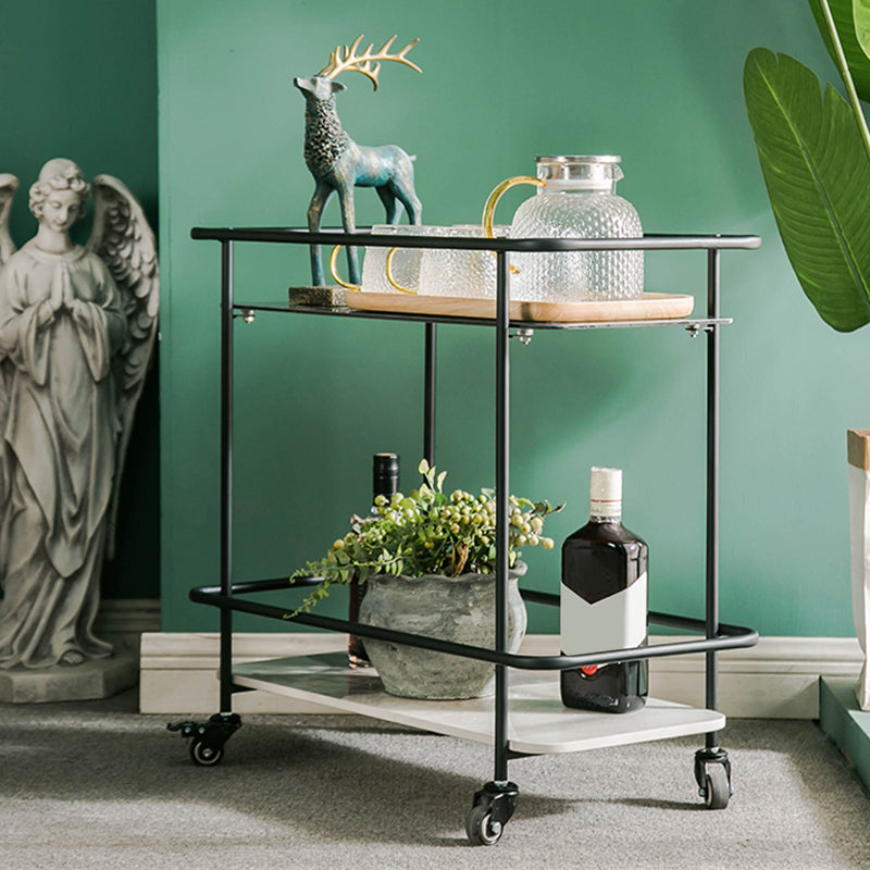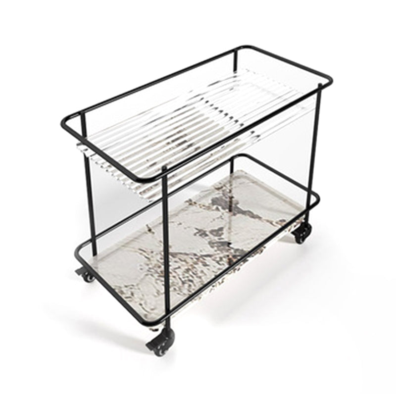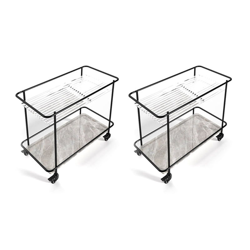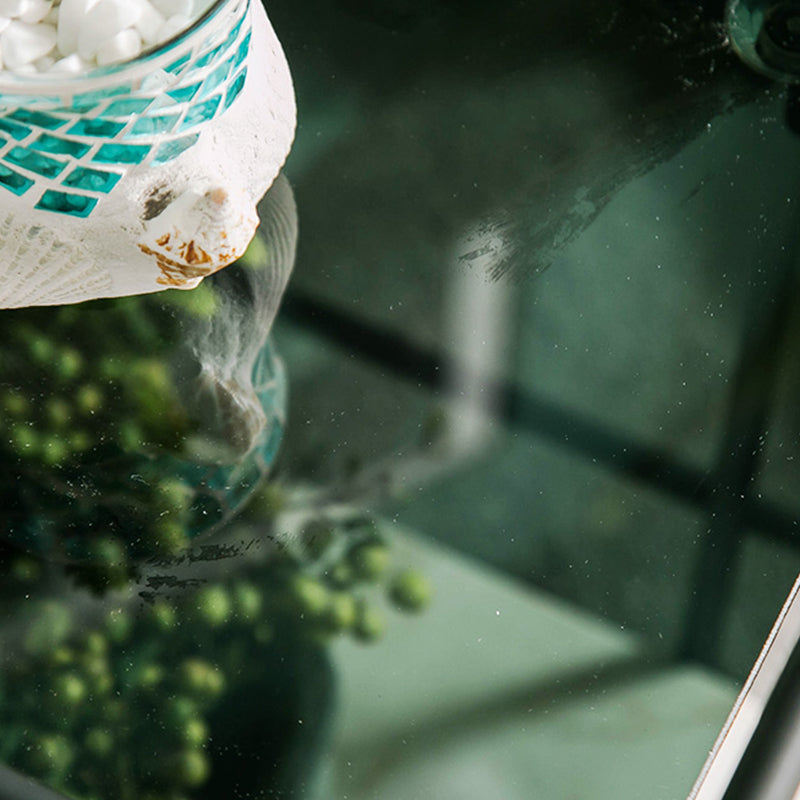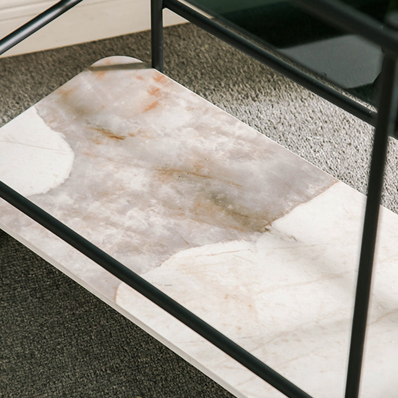 Contemporary Rectangular Glass Top End Table with Slate Shelve
