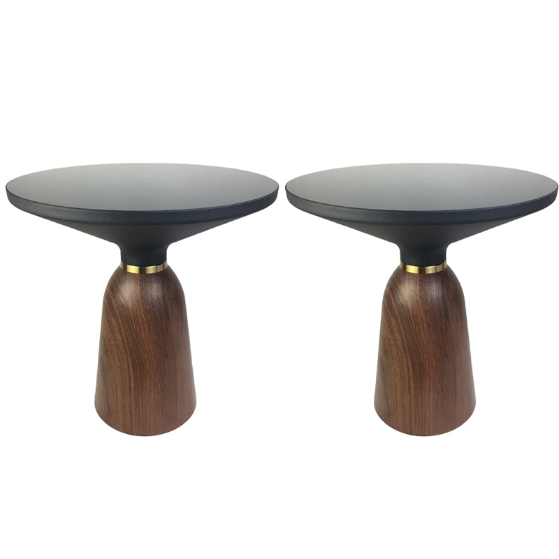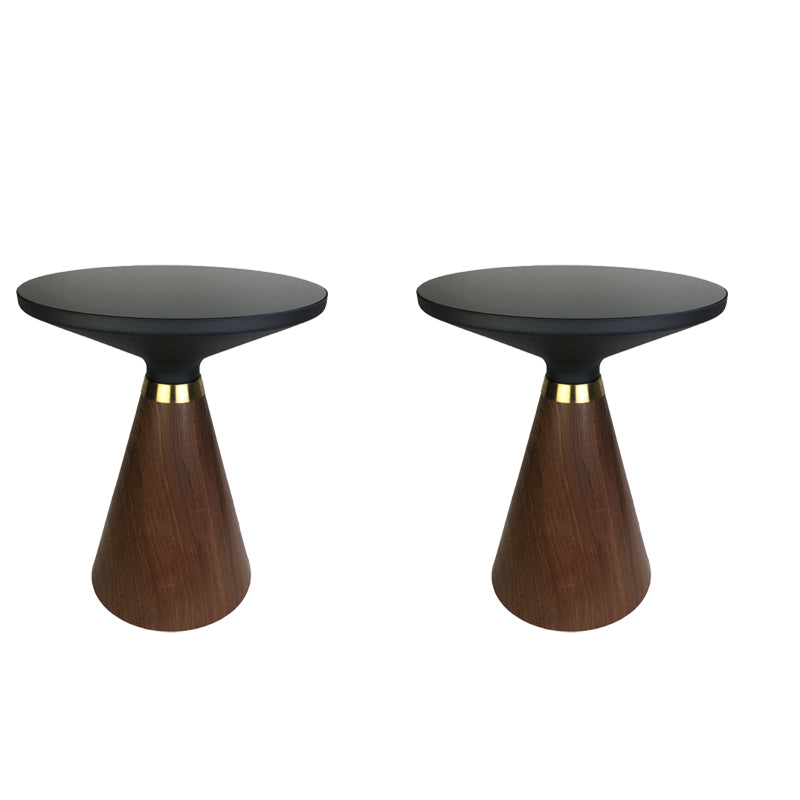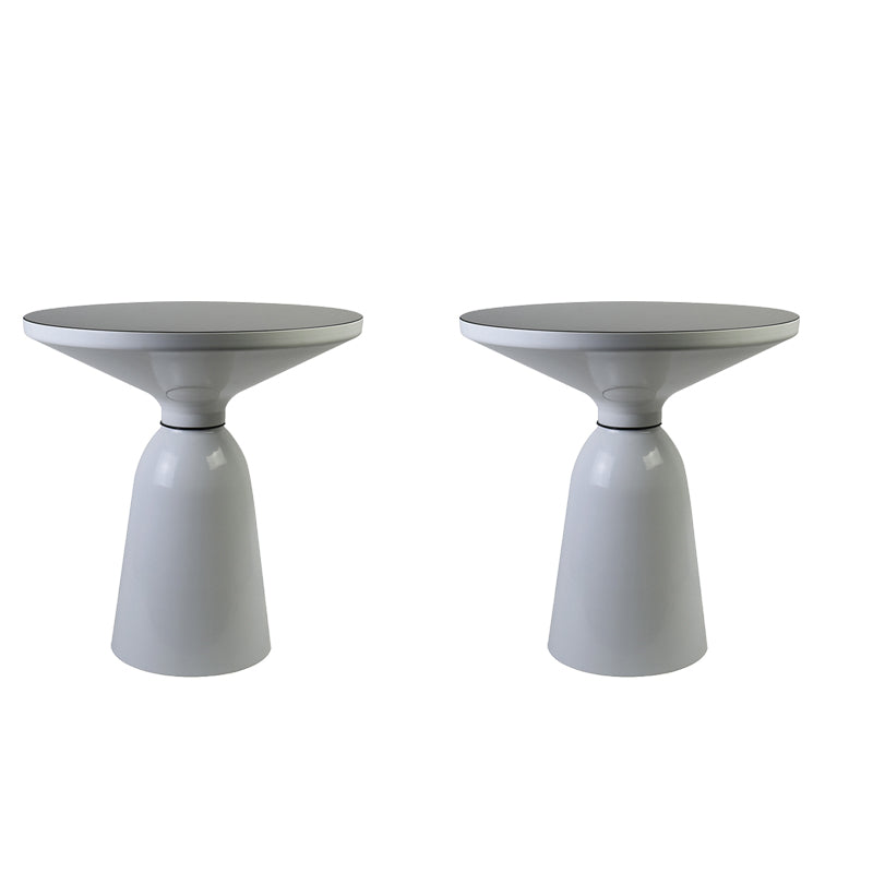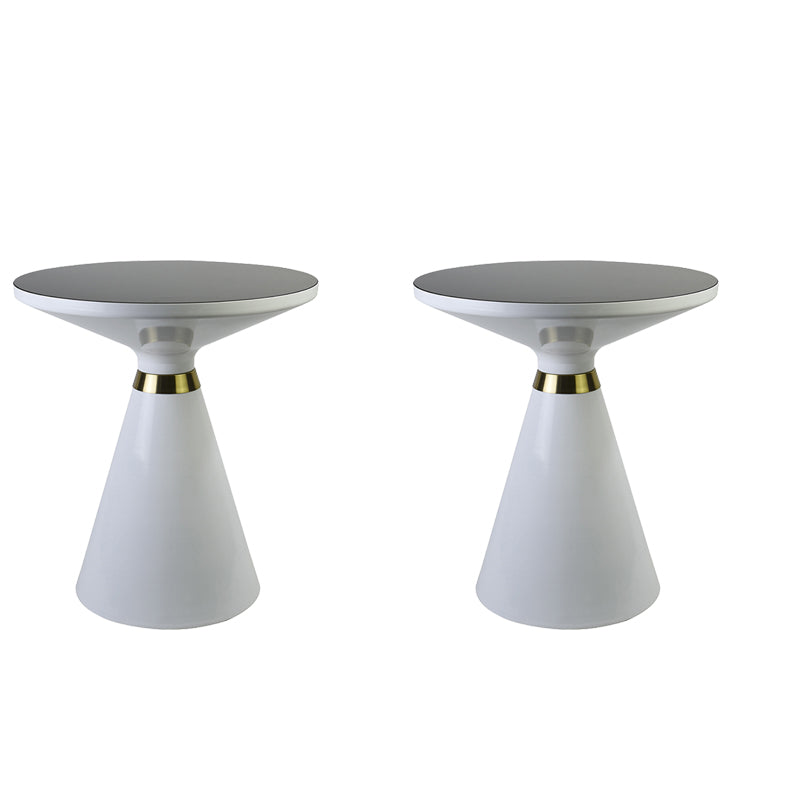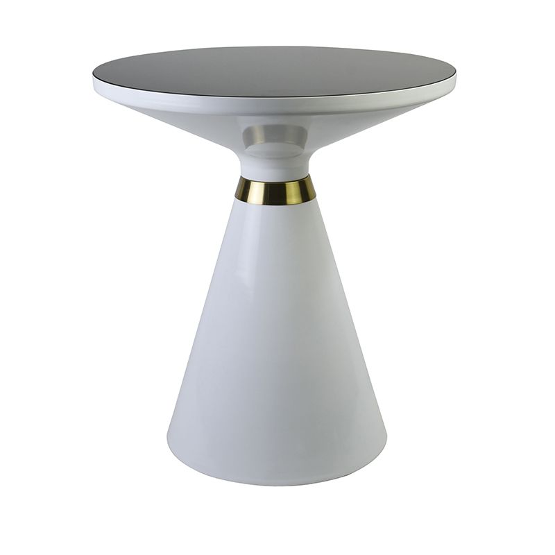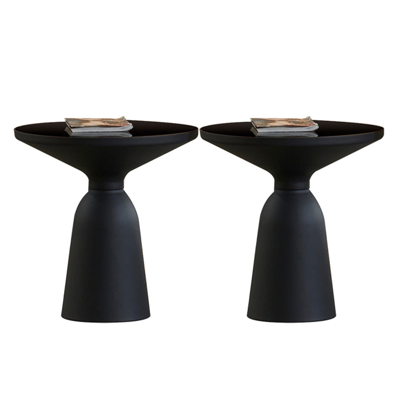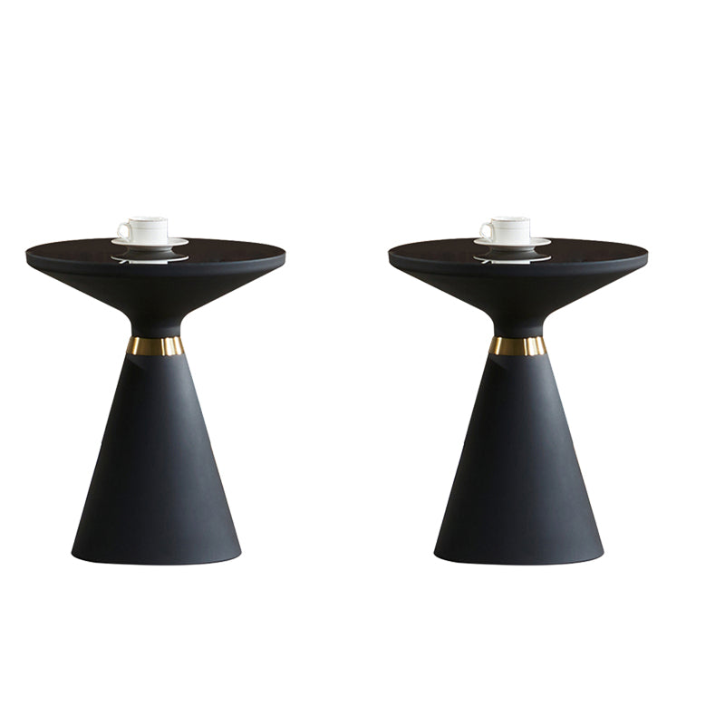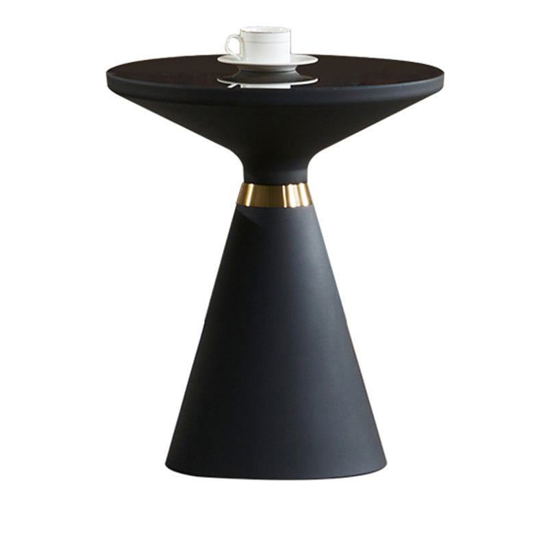 Dia 19.69" Round Black Glass Top End Table Modern Cone Shape Side Table