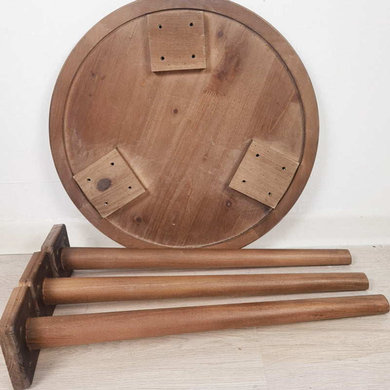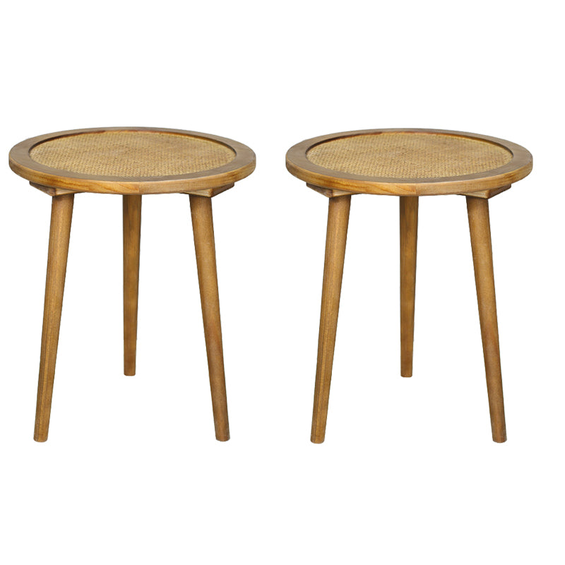 French Rustic Round Rattan Top Side Table 3 Legs Wooden End Table