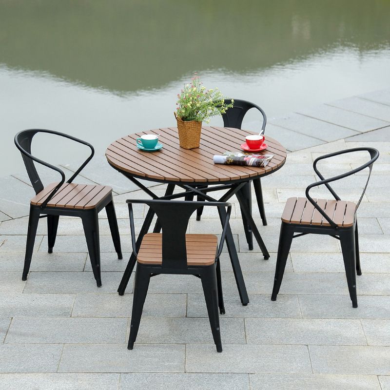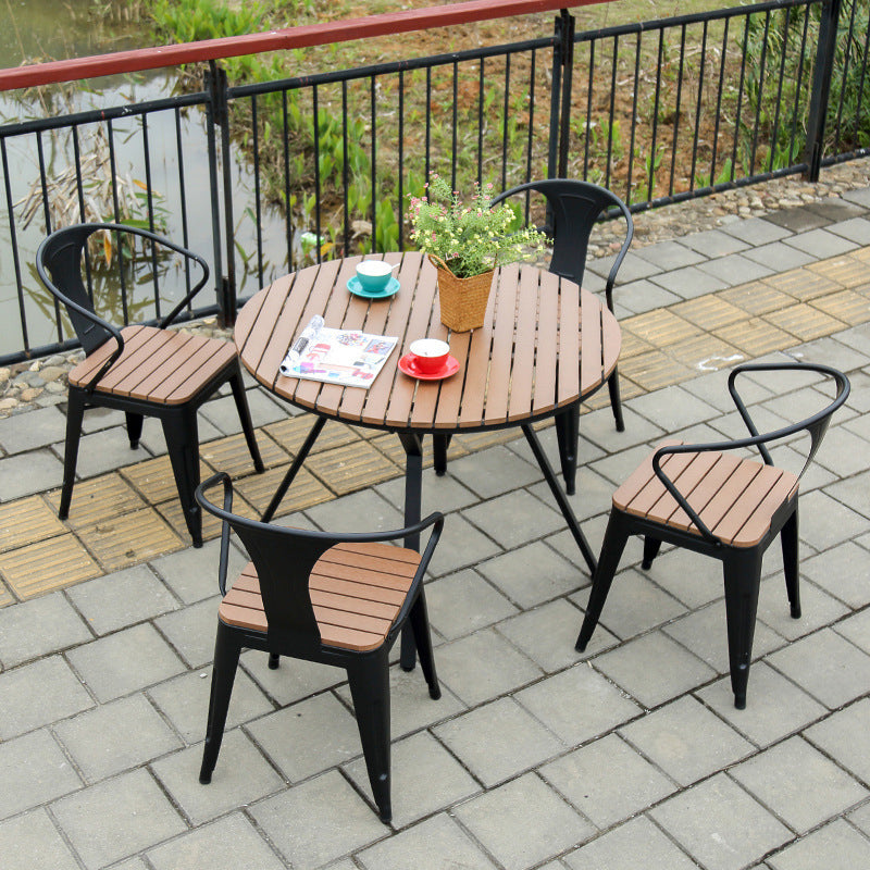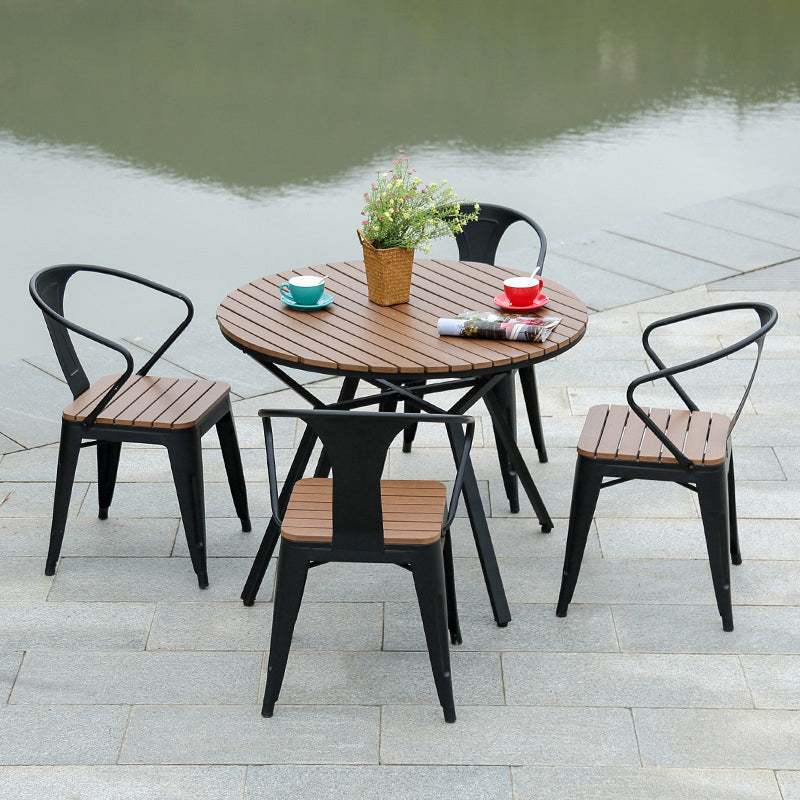 Industrial 1/3/5 Pieces Metal Dining Set Reclaimed Wood Table Set for Outdoor