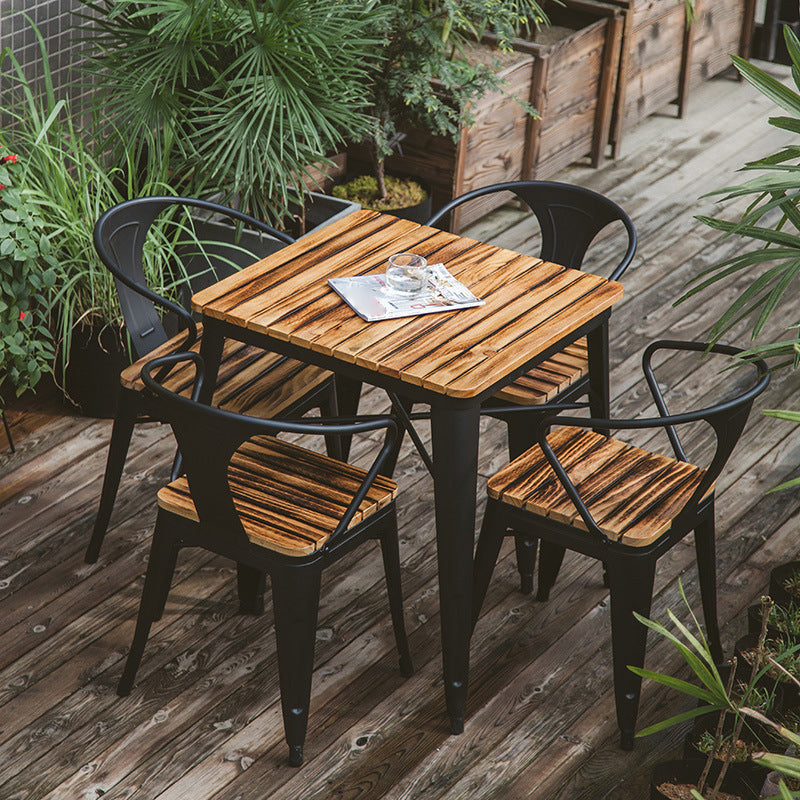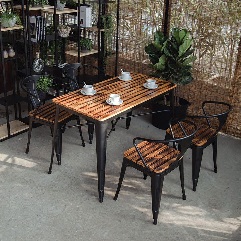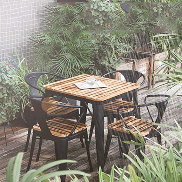Industrial 1/5 Pieces Metal Dining Set Reclaimed Wood Dining Table Set for Outdoor