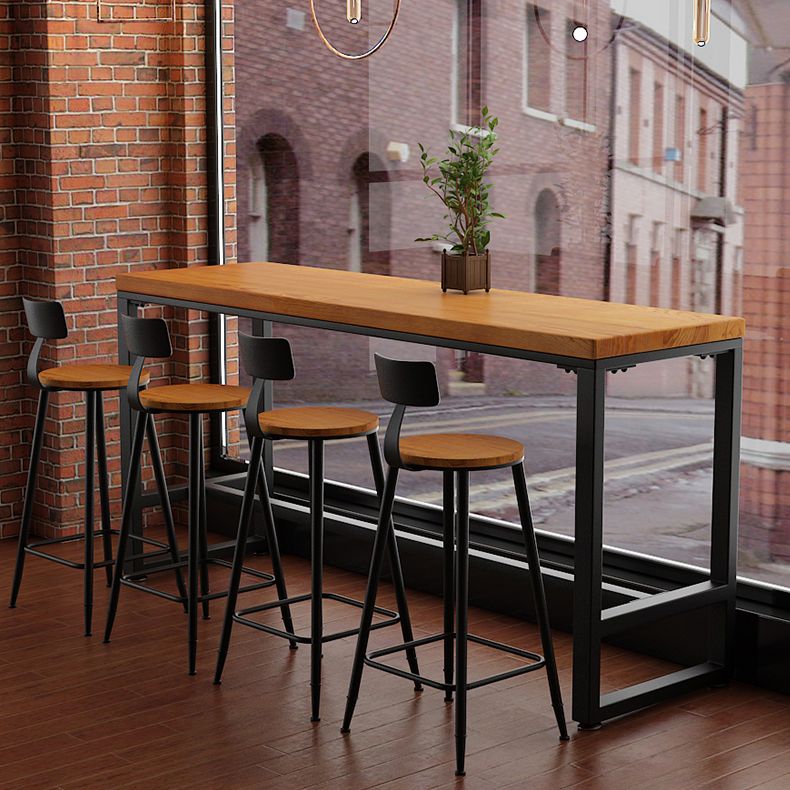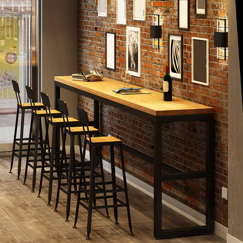 Pine Wood Bar Dining Table Industrial Rectangle Bar Table with Trestle Pedestal for Cafe