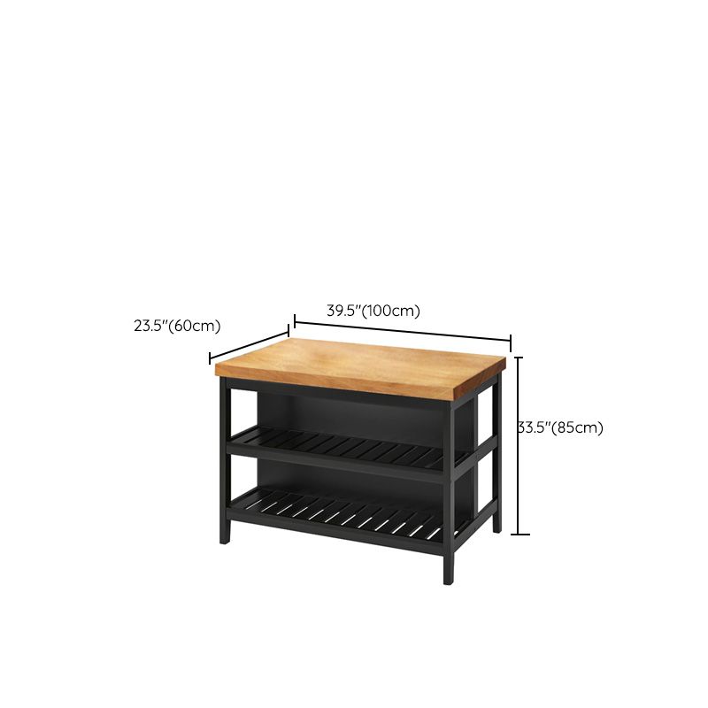 Rectangle Prep Table with Metal Base Solid Wood Island Table for Kitchen