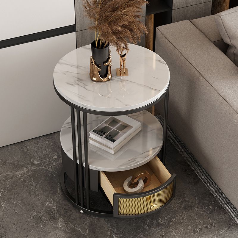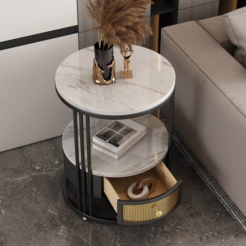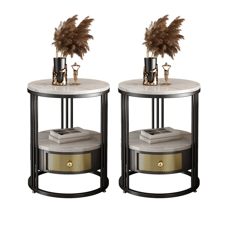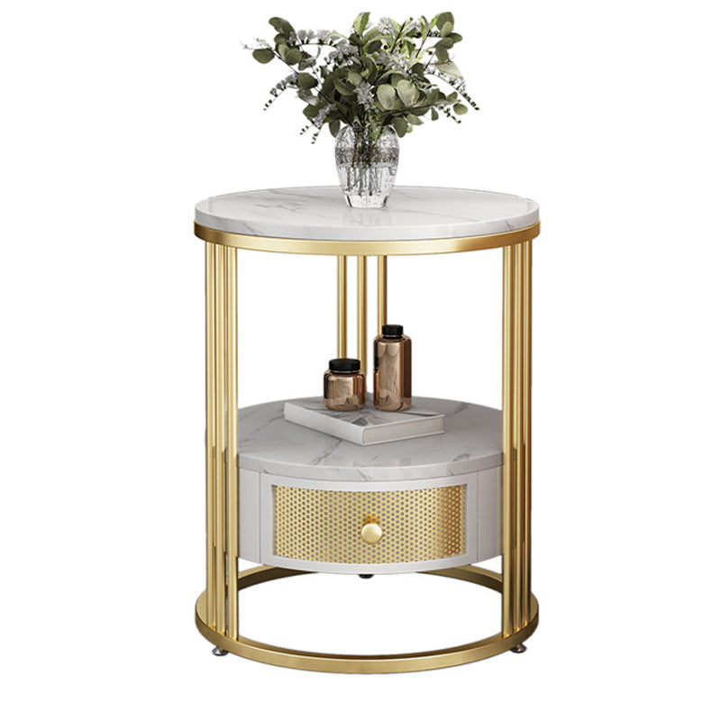 Stone 23.62-inch Tall Modern Frame Side Table 1-shelf 1-Drawer White End Table