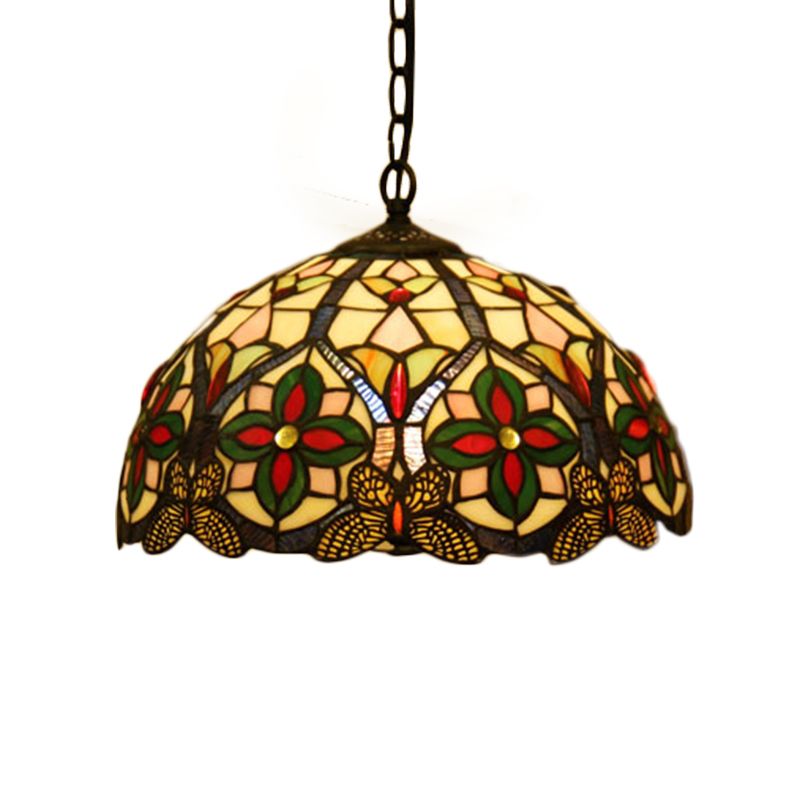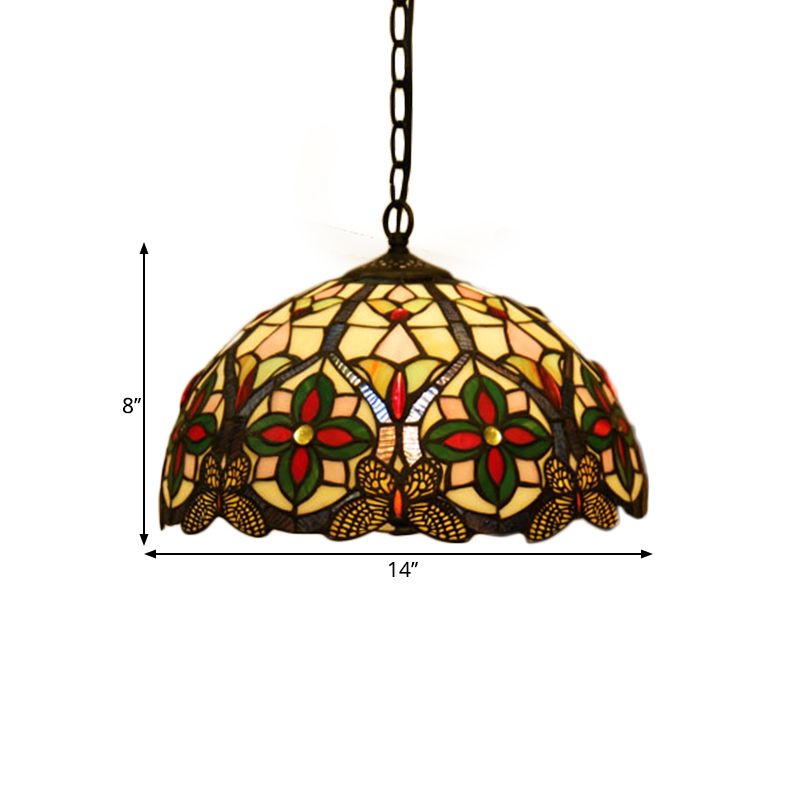 1 Head Drop Pendant Tiffany Bowl Stained Glass Hanging Light Fixture in Green with Flower Pattern