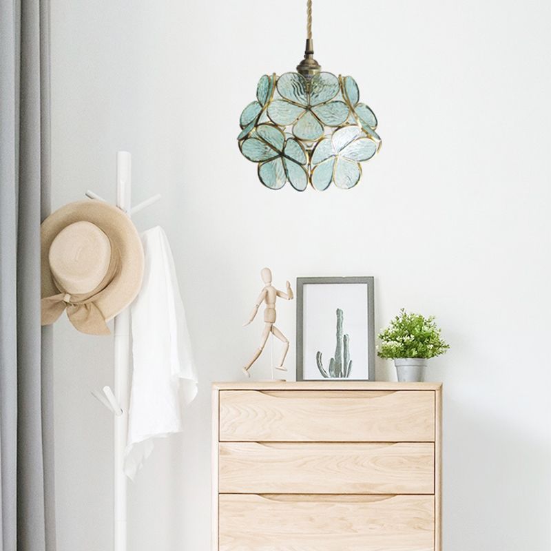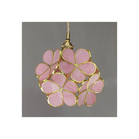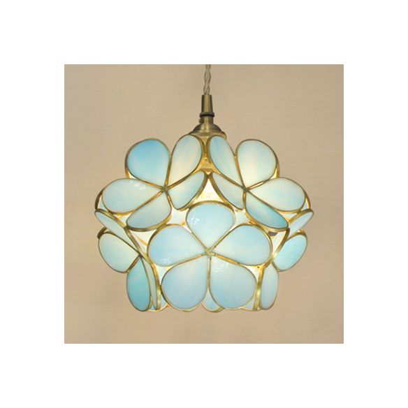 1 Light Flower Hanging Ceiling Light Tiffany Style Blue/Clear/Pink Stainless Glass Suspension Pendant Light