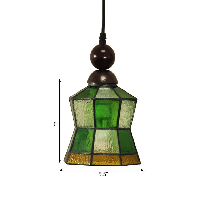 1 Light Geometric Pendant Tiffany Style Green Frosted Glass Hanging Light Fixture for Bedroom