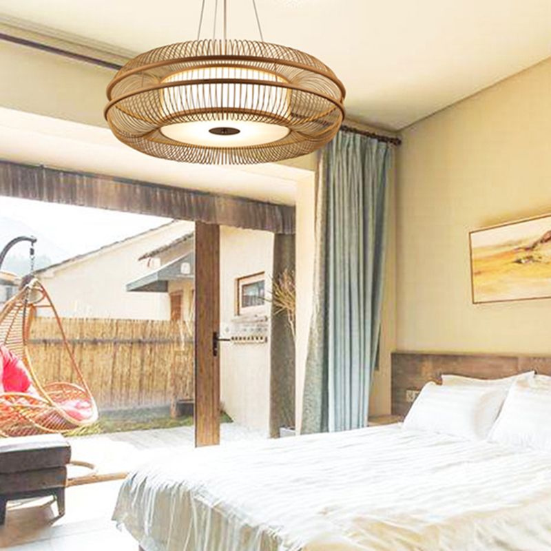 1-Light Japanese Suspended Lighting Fixture Drum Pendant Light Kit for Dining Room