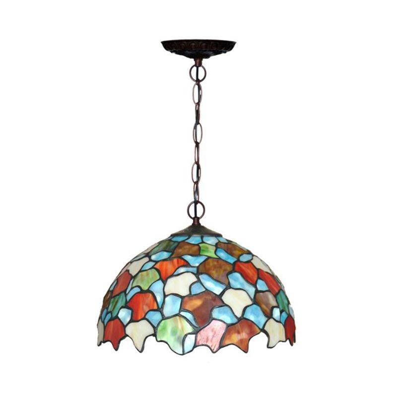 1 Light Kitchen Hanging Pendant Light Mediterranean Red/Green Ceiling Lamp with Domed Stained Glass Shade