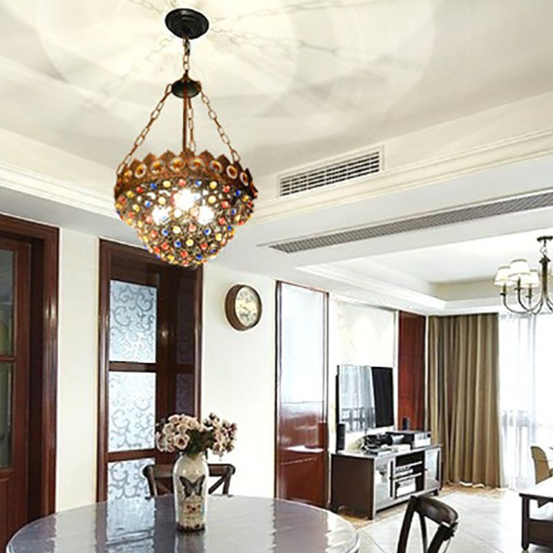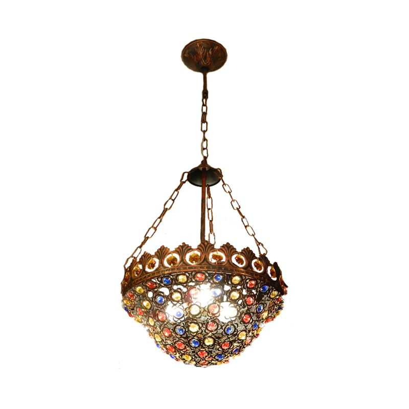 10"/13" Wide Metal Copper Ceiling Chandelier Bowl 3 Bulbs Art Deco Down Lighting Pendant for Dining Room