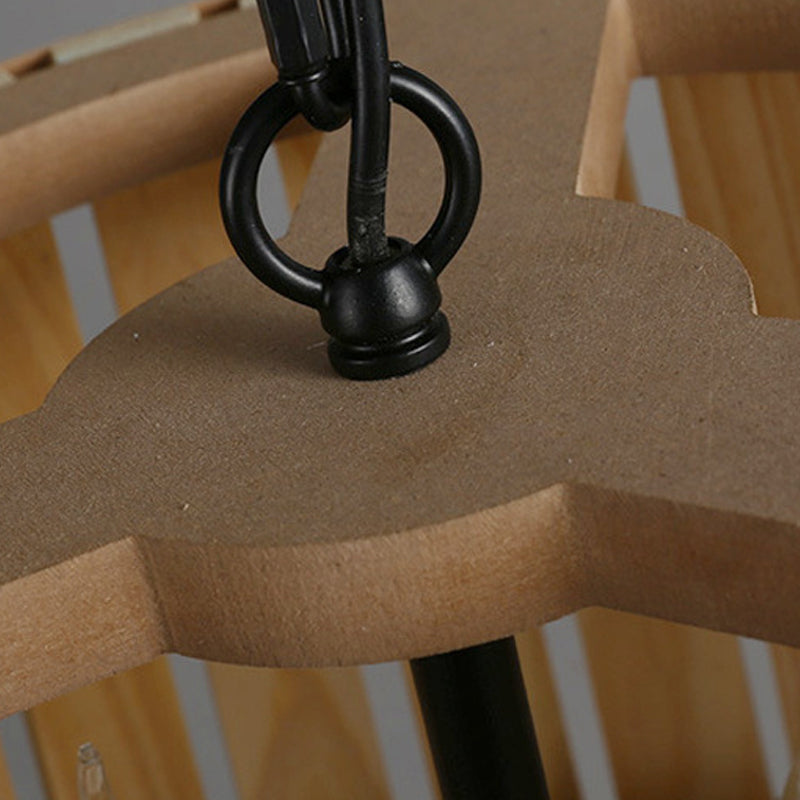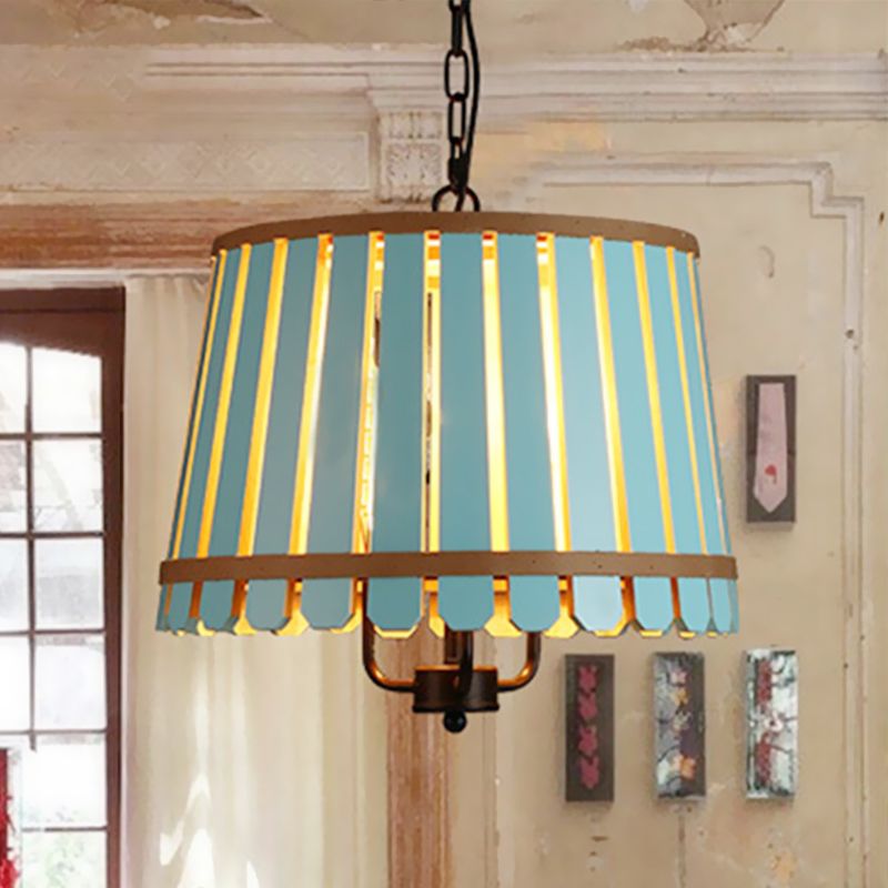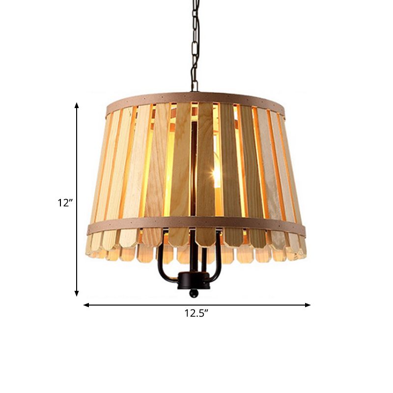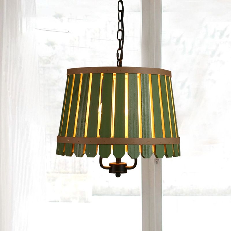 12.5"/16.5" Wide Slatted Chandelier Light Fixture Modern Wooden 3 Lights Blue/Green/Wood Hanging Pendant for Dining Room
