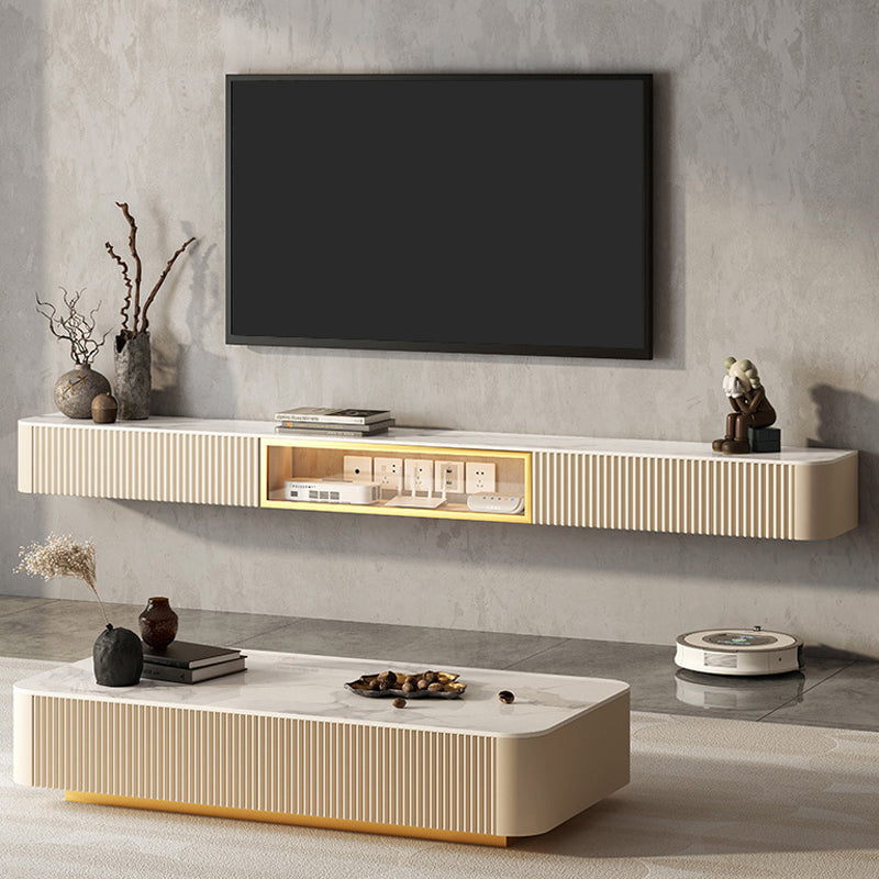 12" W Glam TV Media Stand Wall-mounted Enclosed Storage Wood TV Media Console