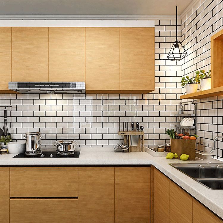 12" X 24" White Subway Tile Mixed Material Rectangular Shower Wall Tile