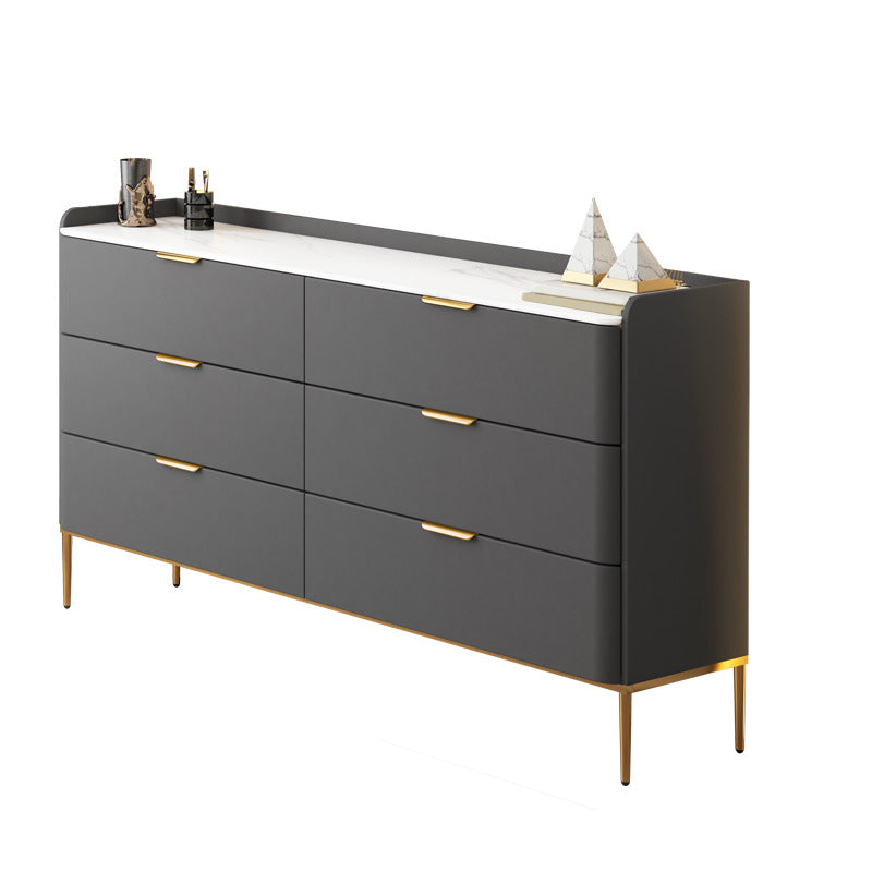 16" D Modern Slate TV Stand Solid Wood TV Media Stand with 6 Drawers