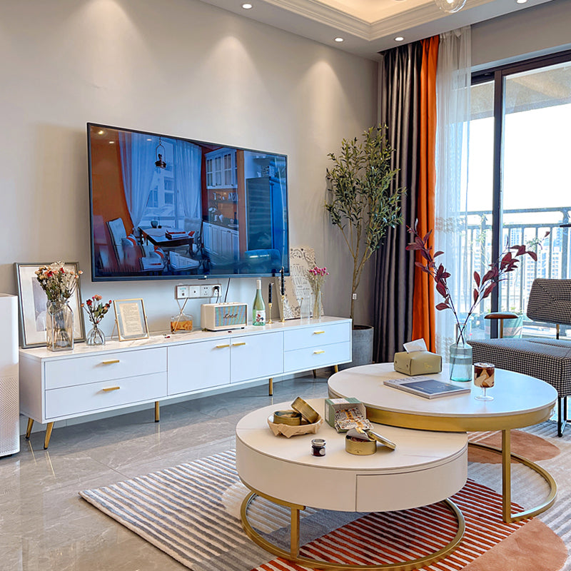 17.72"H TV Stand Glam Style White TV Console with 4 Drawers for Living Room