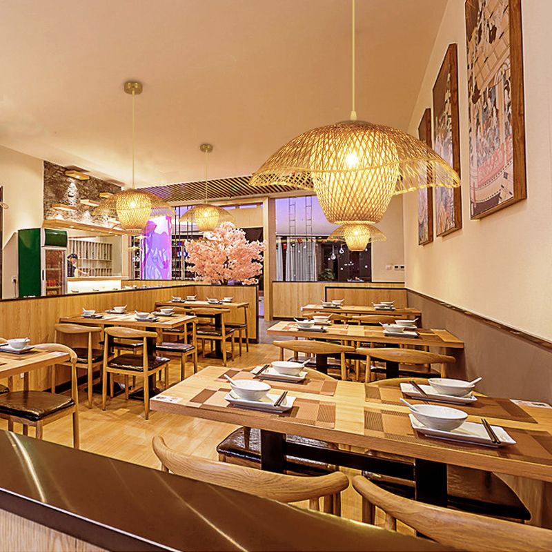 18"/21.5"/25.5" Wide Hat Suspension Pendant Retro Bamboo 1 Bulb Wood Hanging Light Kit for Tearoom