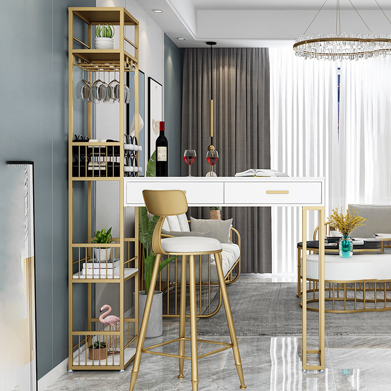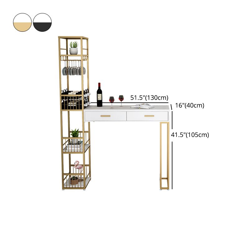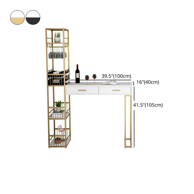 2-Drawer Modern Steel Bistro Table White Stone Top Indoor Bar Dining Table with Wine Rack