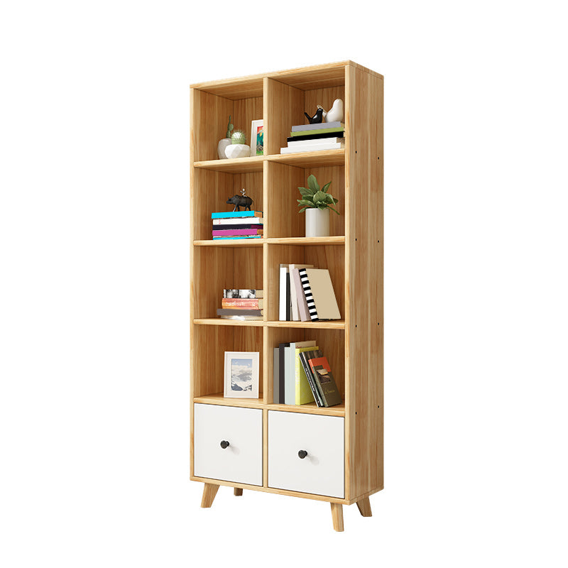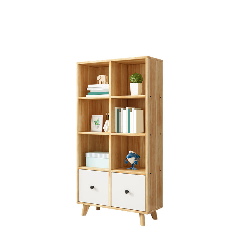 2-Drawer Solid Wood Accent Chest Natural Modern Cabinet with Shelves