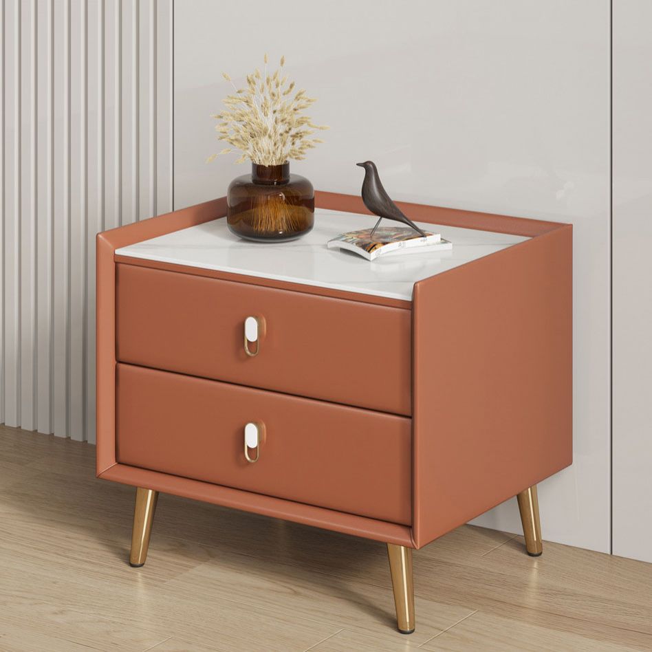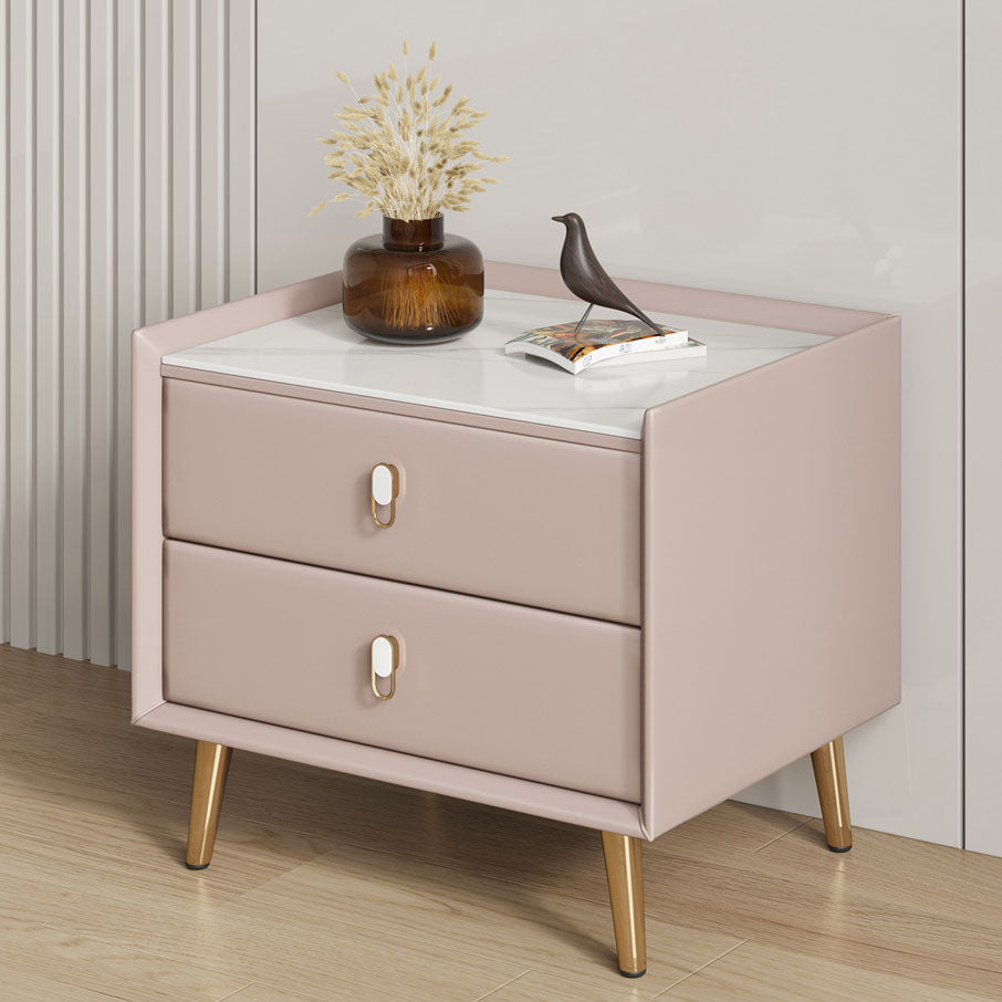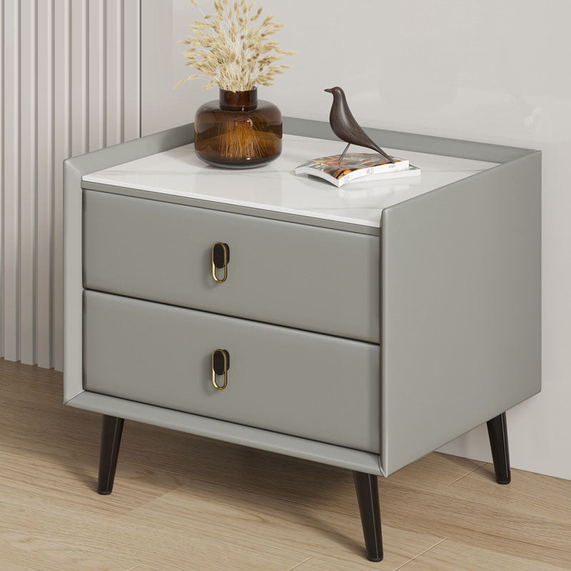 2 Drawers Solid Wood Standard Nightstand Slate Top Kids Bedside Table