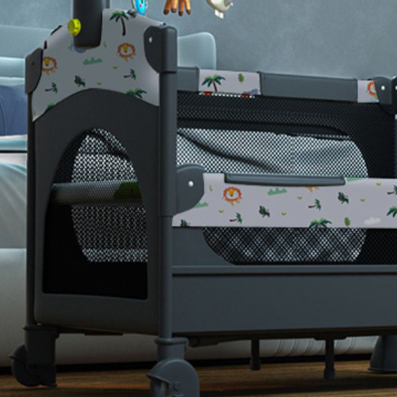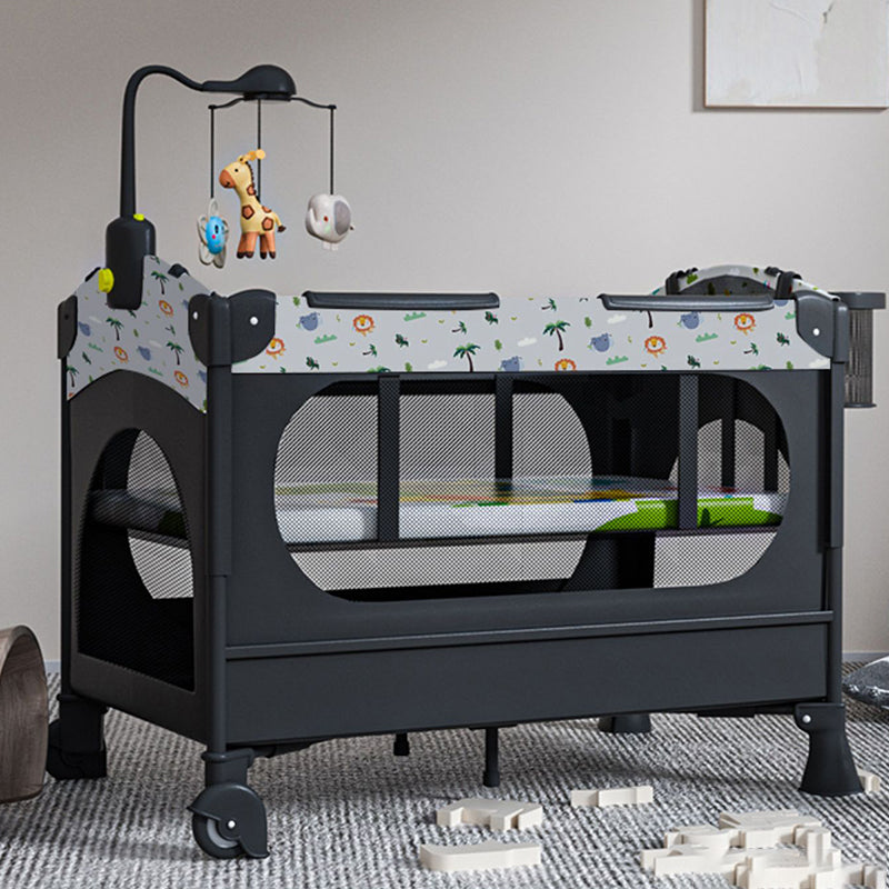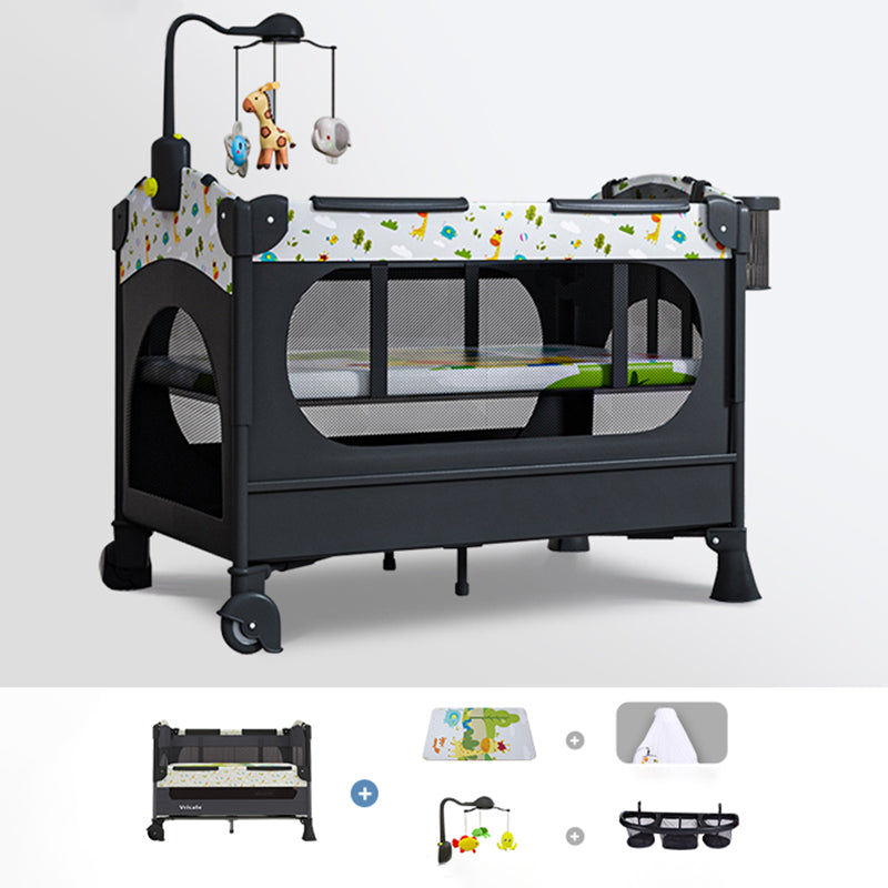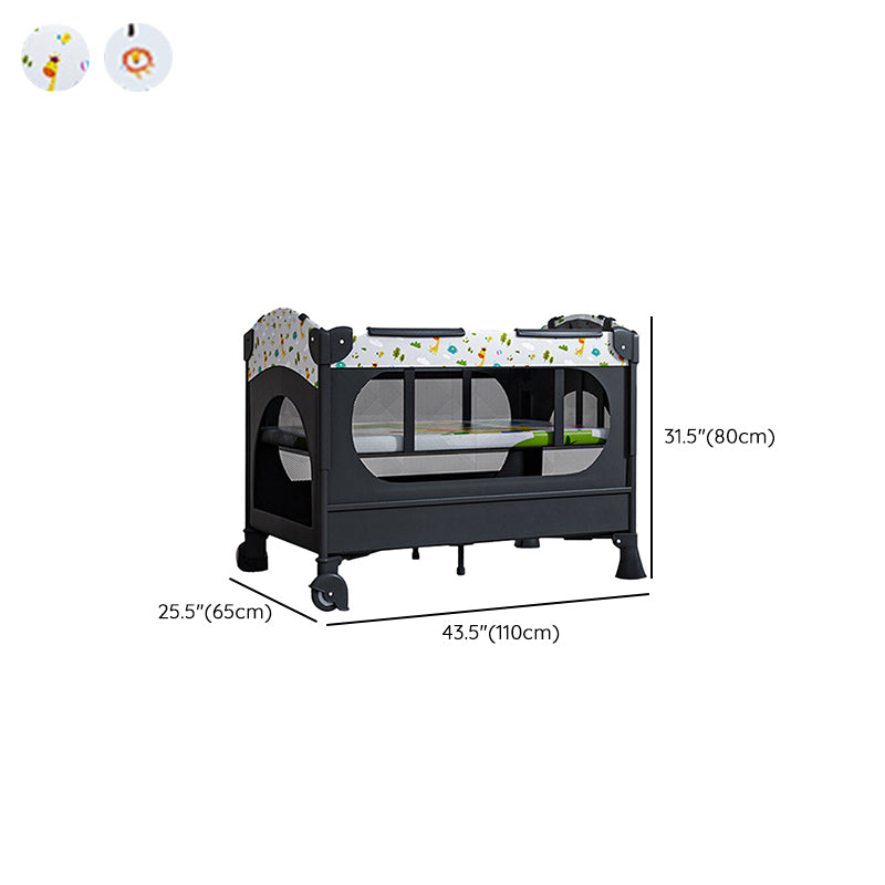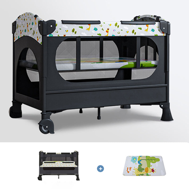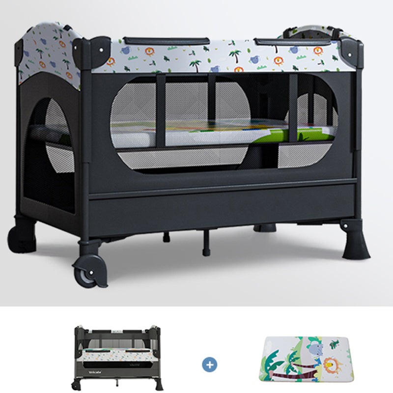 2-in-1 Folding Crib in Black Plastic Crib with Casters and Mattress