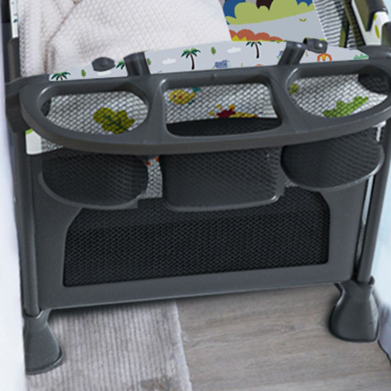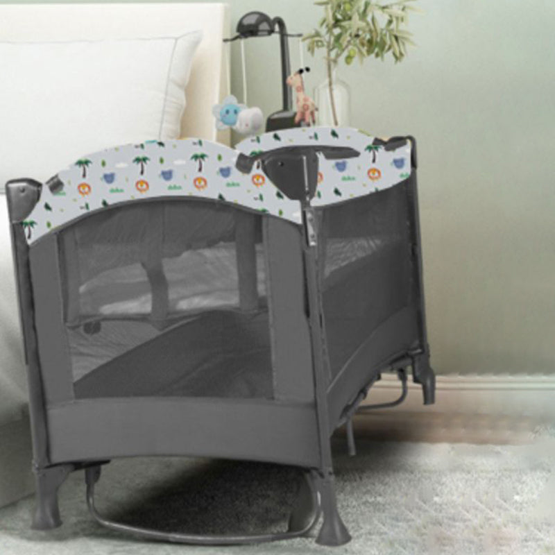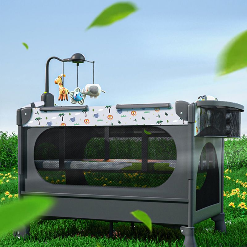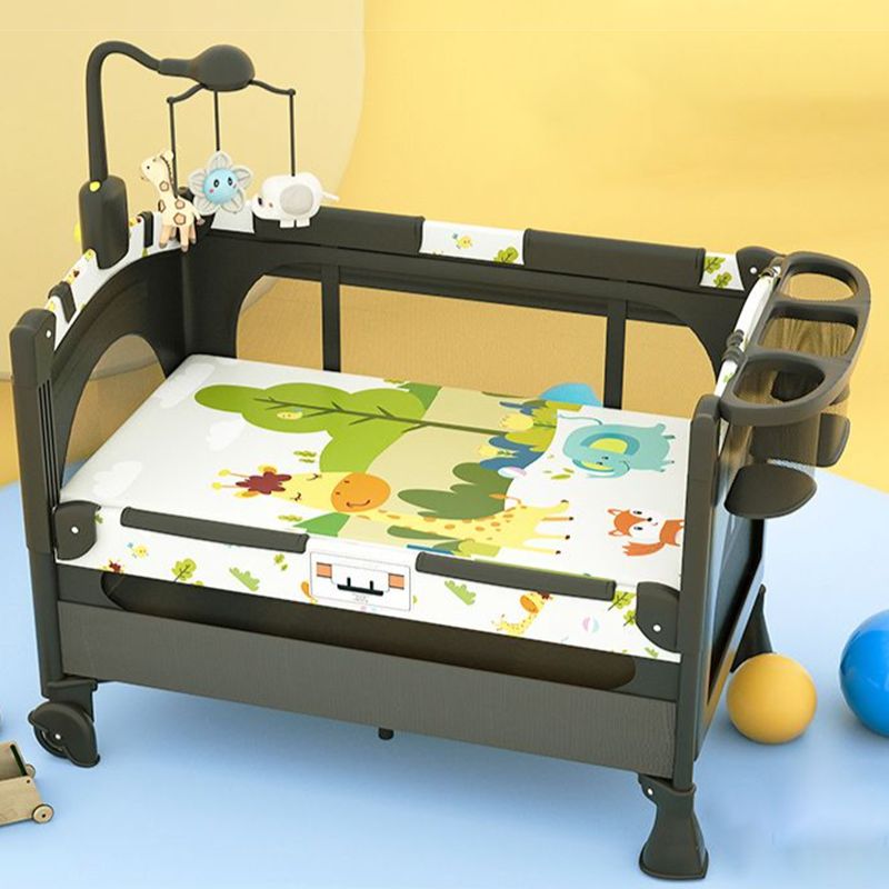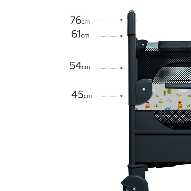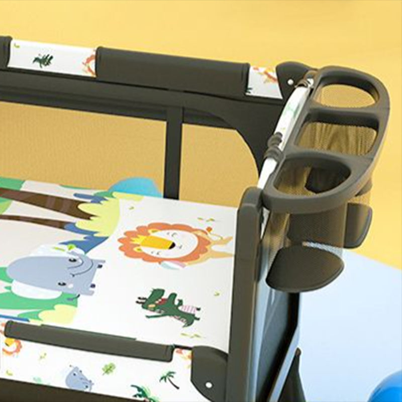 2-in-1 Folding Crib in Black Plastic Crib with Casters and Mattress