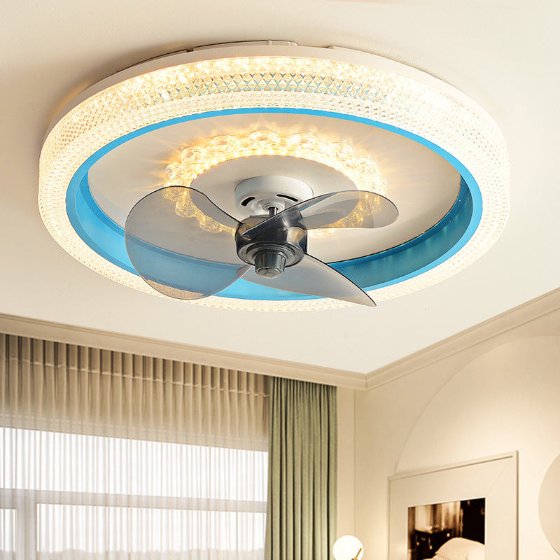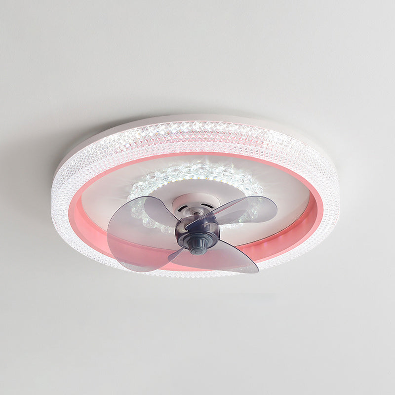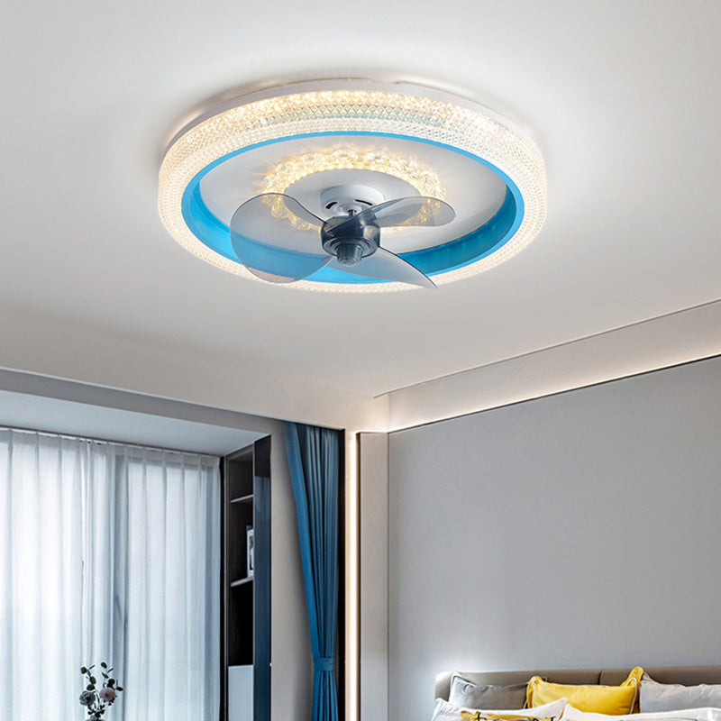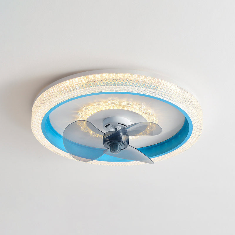 2-Lights Modern Round Fan Light Metal Colorful LED Flush Mount Light for Bedroom