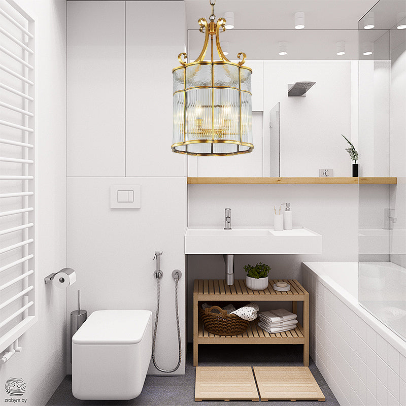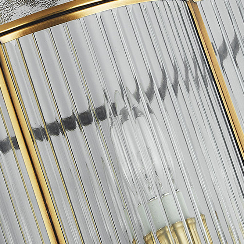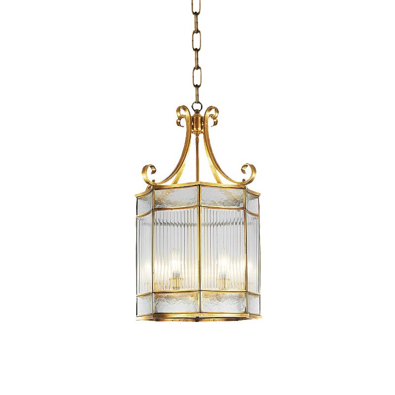 22"/23" H 4 Bulbs Cylinder Pendant Lamp Colonial Gold Clear Prismatic Glass Chandelier Light Fixture for Living Room