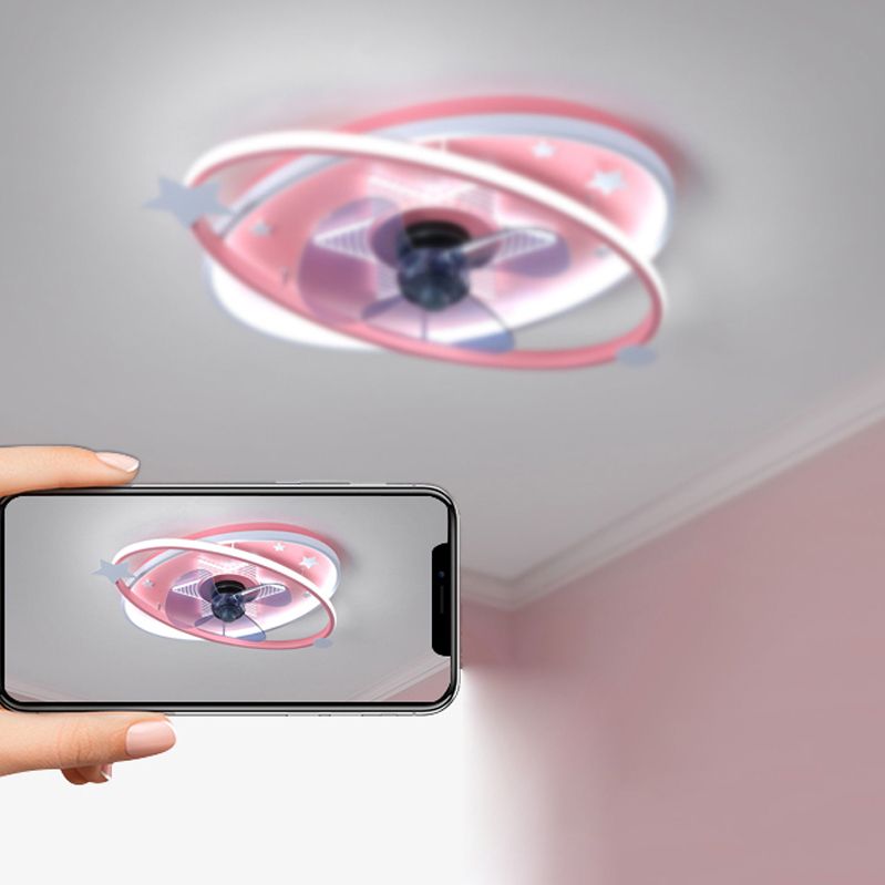 3-Blade Pink/Blue Ceiling Fan Children Metallic Fan with Light for Home