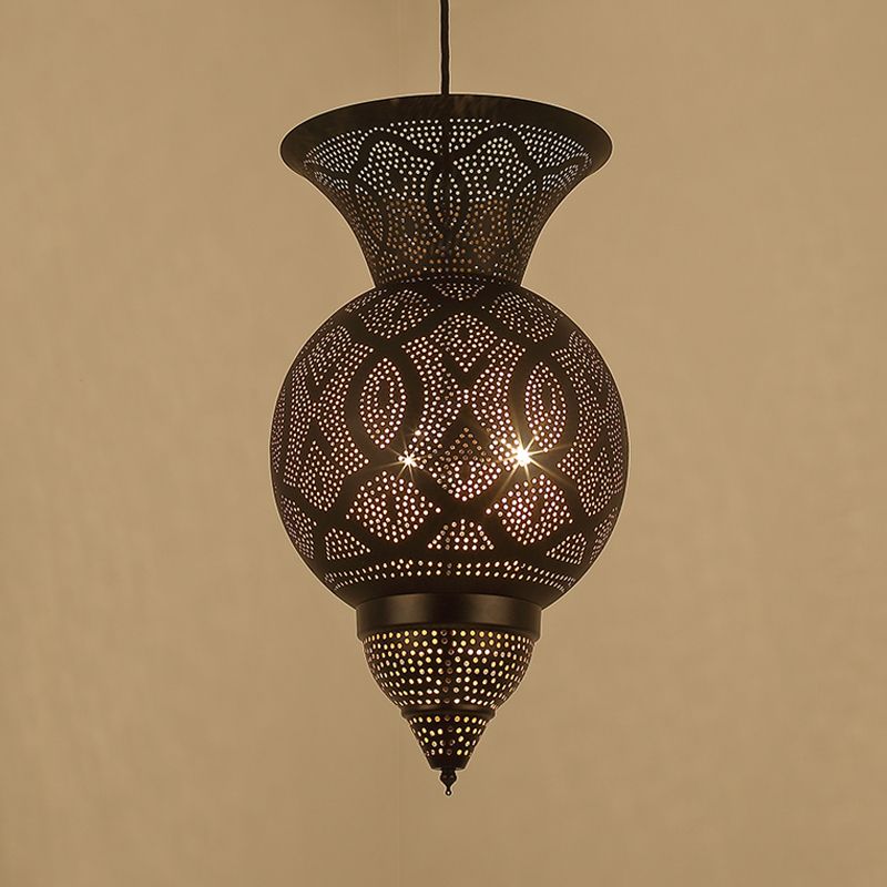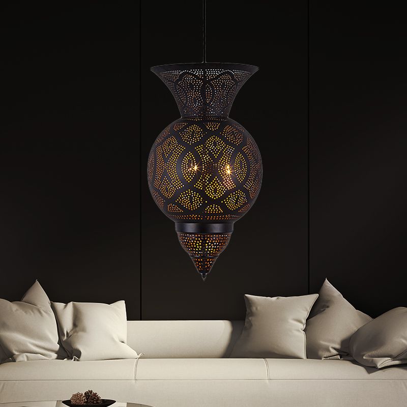 3-Bulb Etched Urn Hanging Chandelier Countryside Black Metal Ceiling Suspension Lamp